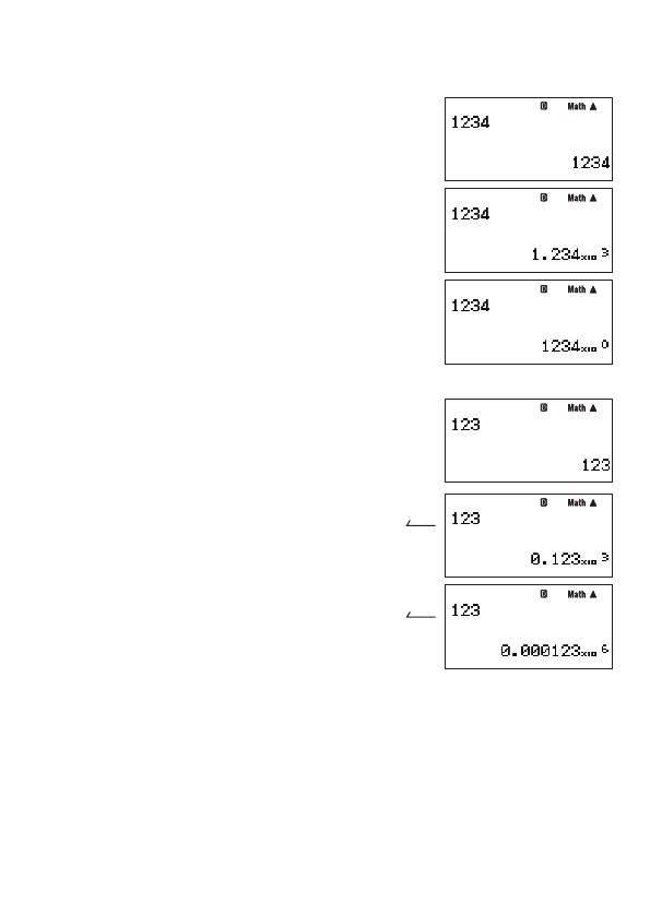 • A mark like the ones shown below indicates that you need to change the calculator’s