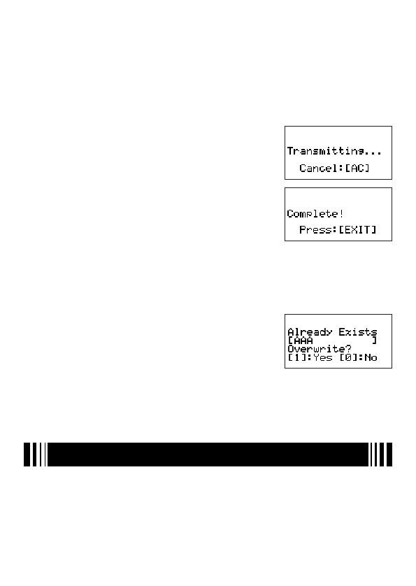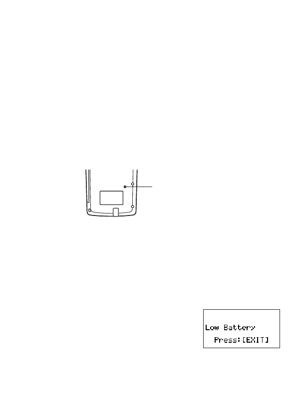 • The calculator’s data transfer function is disabled while the Low Battery message is on the