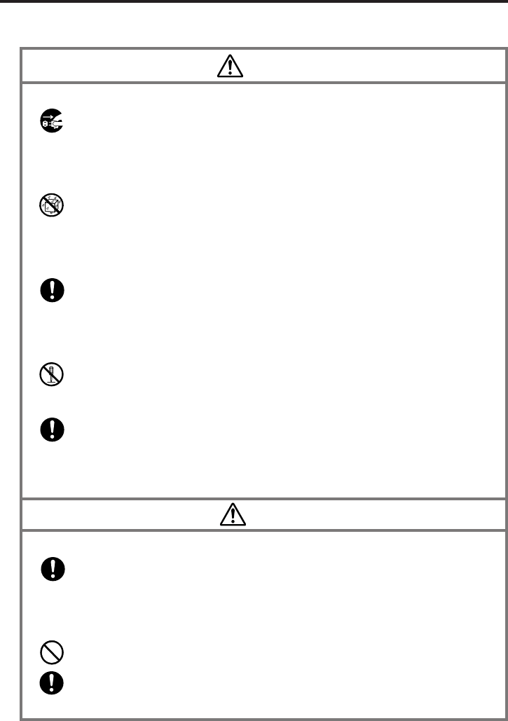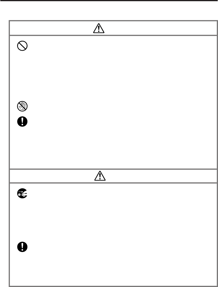 the danger of fire and electrical shock. Immediately turn off power, unplug the