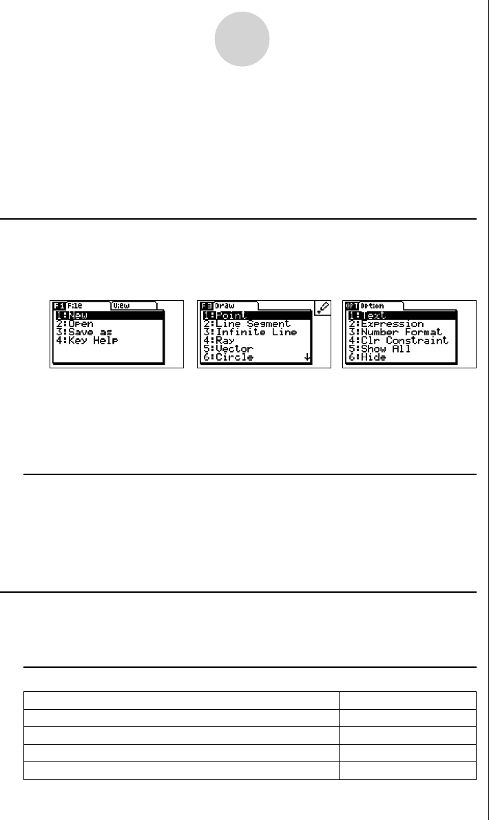 • Pressing a key that corresponds to a menu ([F1] through [F6] or [OPT]) will display the