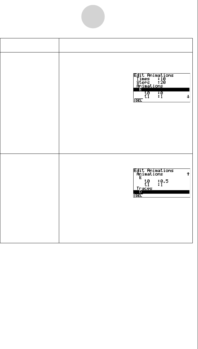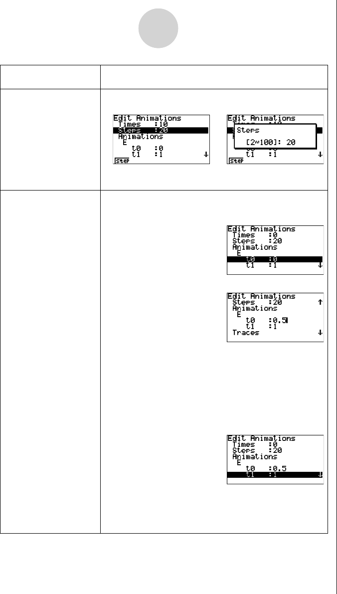 Add one or more values to the animation table (page 6-7) 7:Add Table