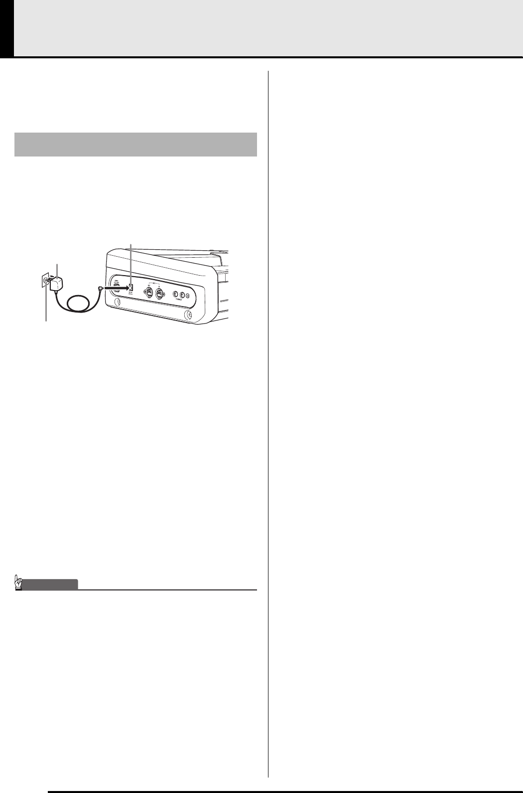 • Before using the AD-12 Adaptor to power the product, be sure to check the AC Adaptor for any damage first. Carefully check the power cord