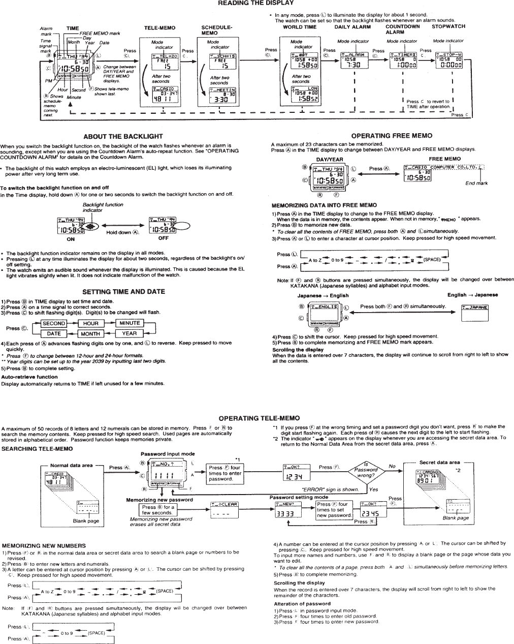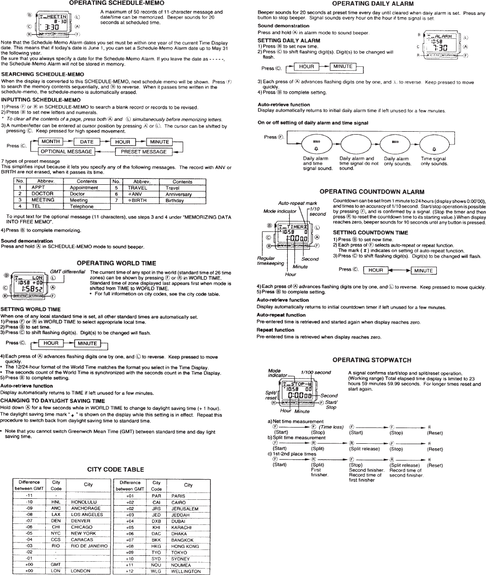 Casio Operation Chart Module Qw 1425 Users Manual S/M 492(QW 1425)