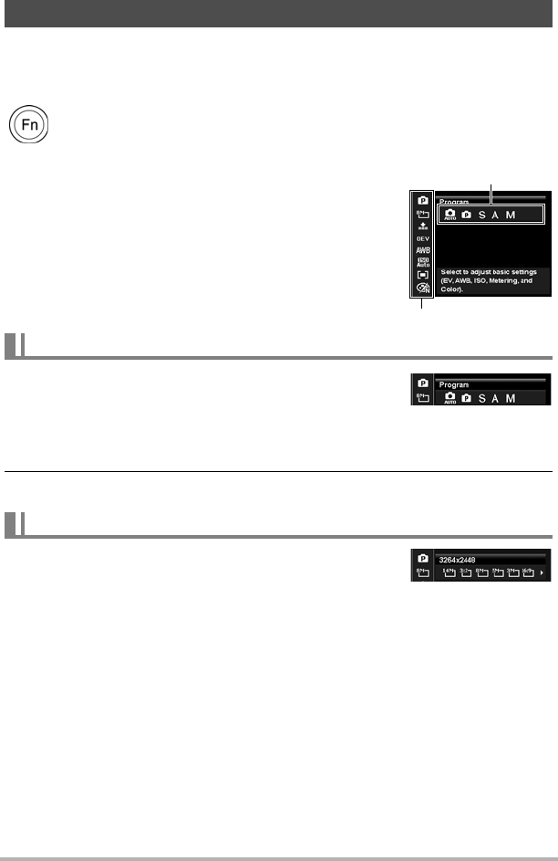 Recording Snapshots; Macro; Self-timer; Continuous Shutter (3 images);