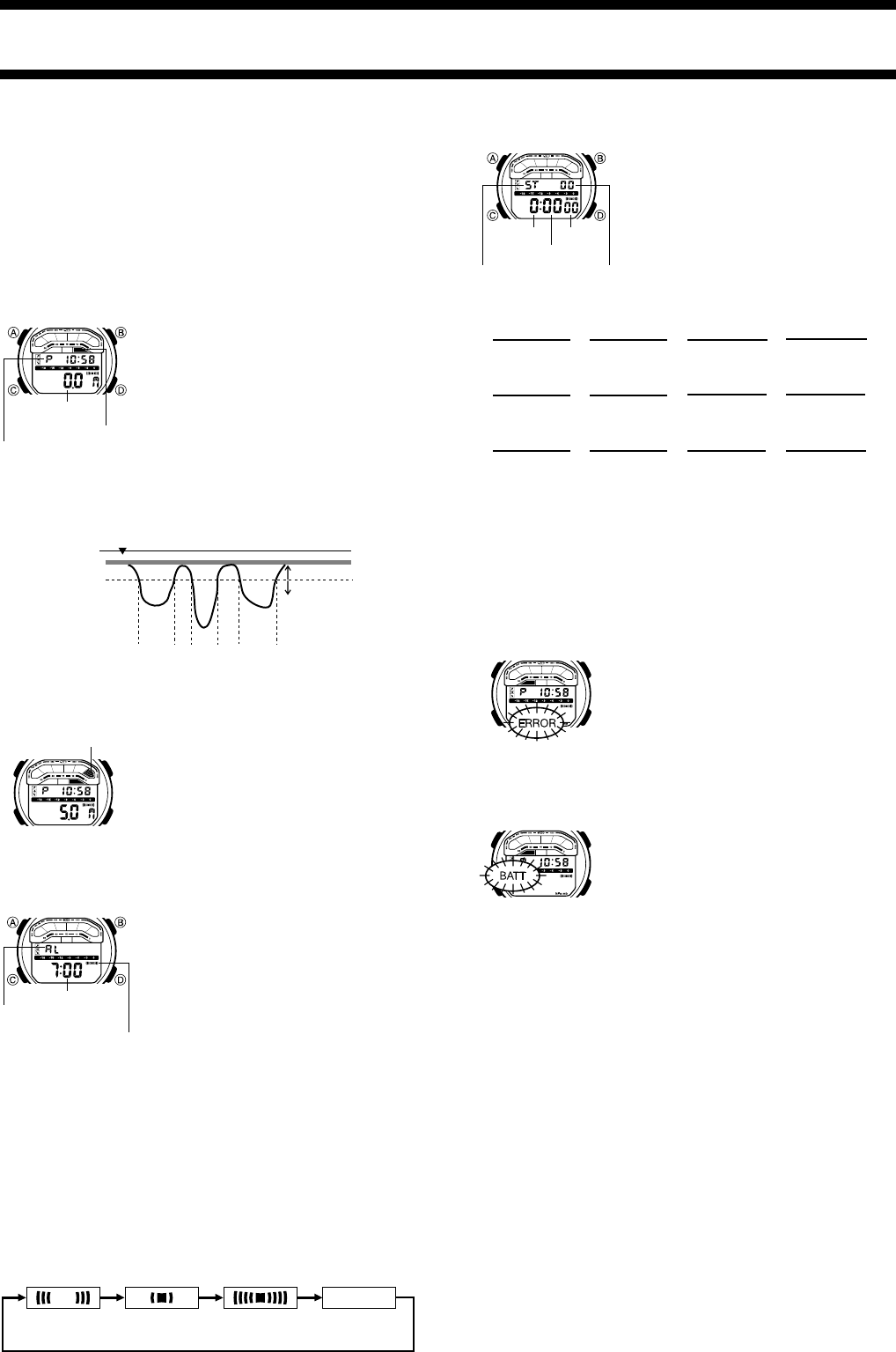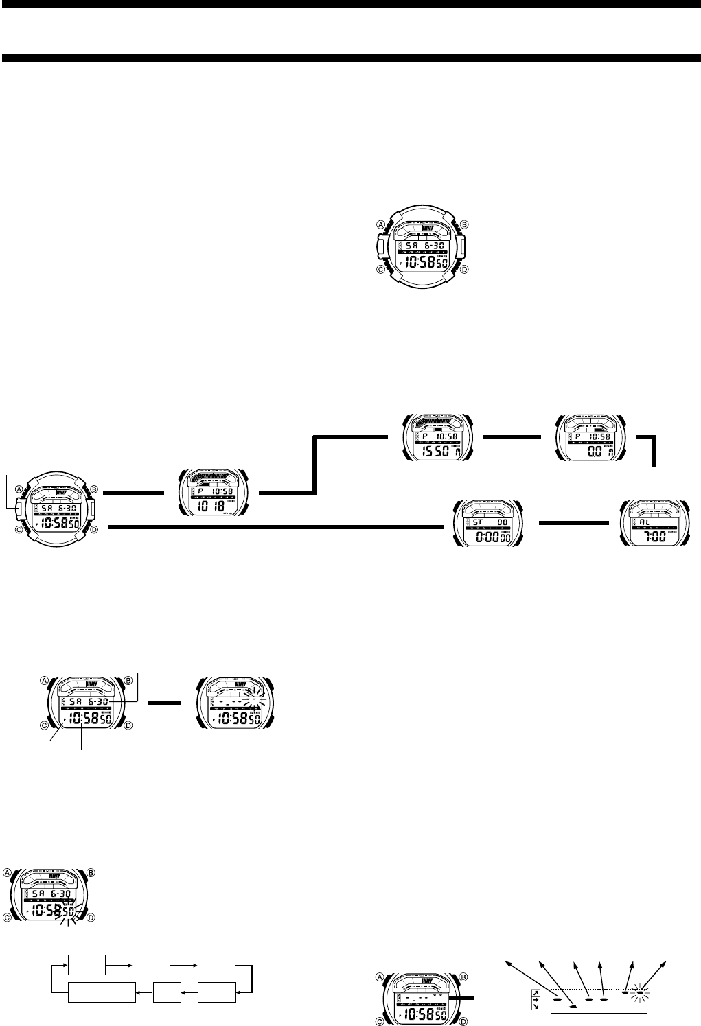 •In any mode (except for the Stopwatch Mode), press B to illuminate the display. Depth Gauge Mode