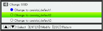 the three default SSIDs (casiolpj_default1, casiolpj_default2, casiolpj_default3). If you