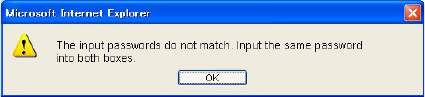 page from a computer. Clicking the [OK] button on the error message will return to the