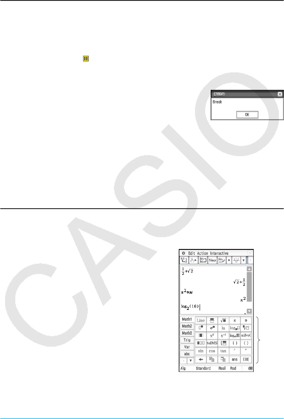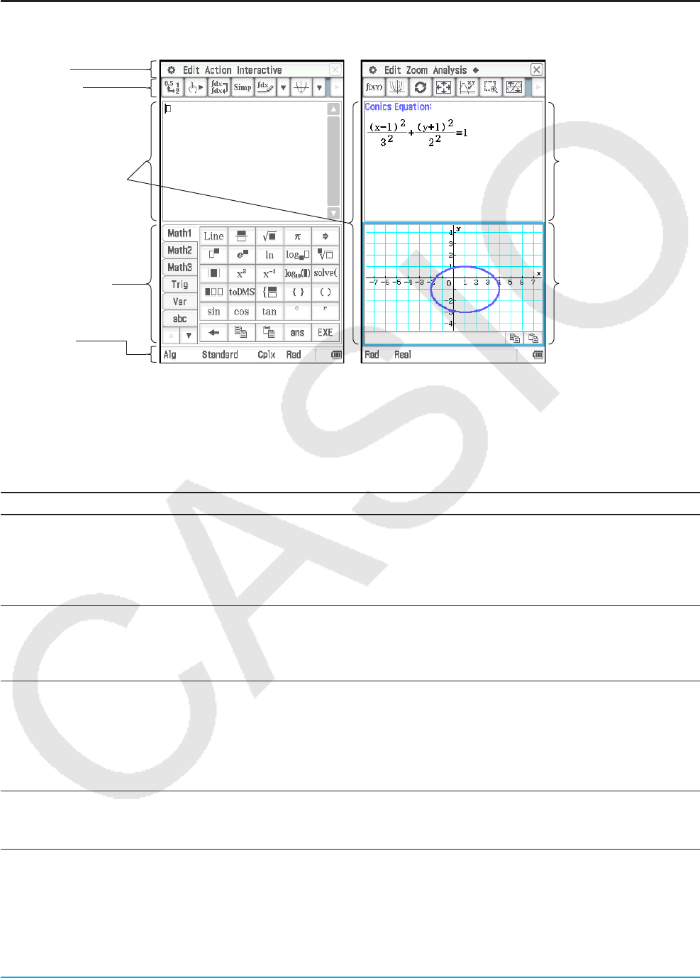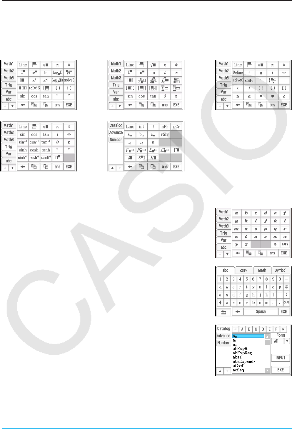 entsprechen möglicherweise nicht genau den Anzeigen in ClassPad.