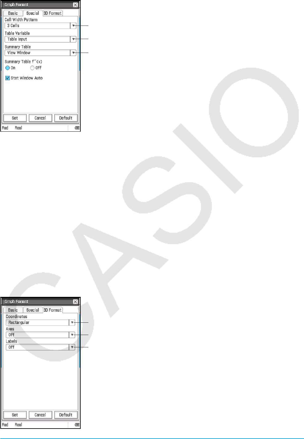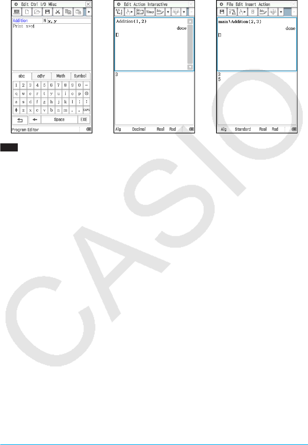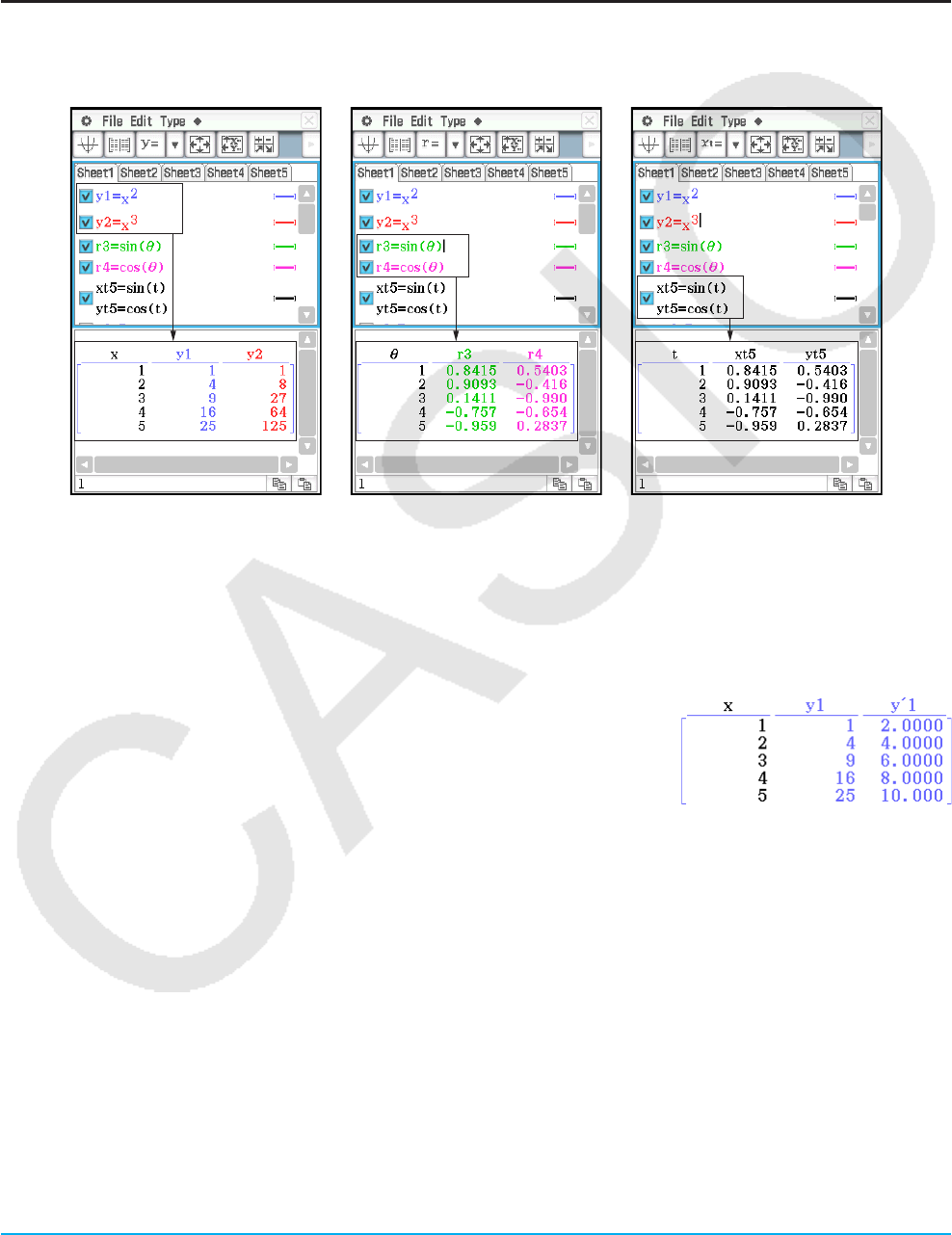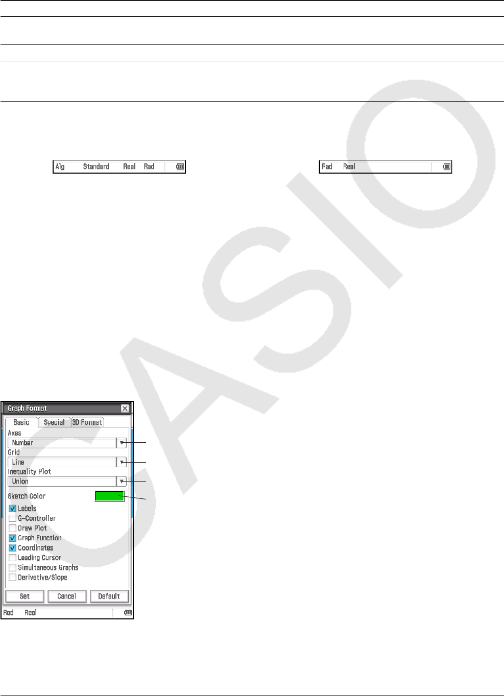 entsprechen möglicherweise nicht genau den Anzeigen in ClassPad.