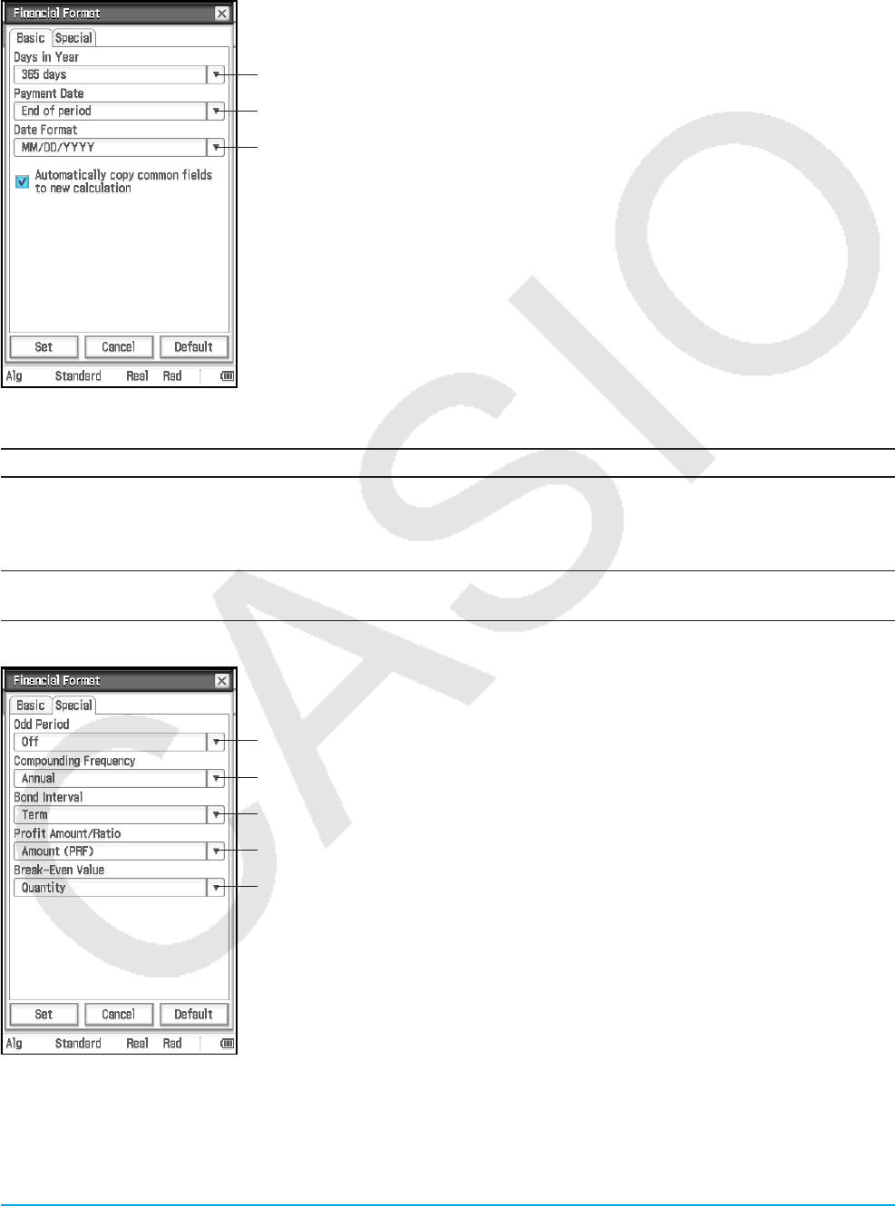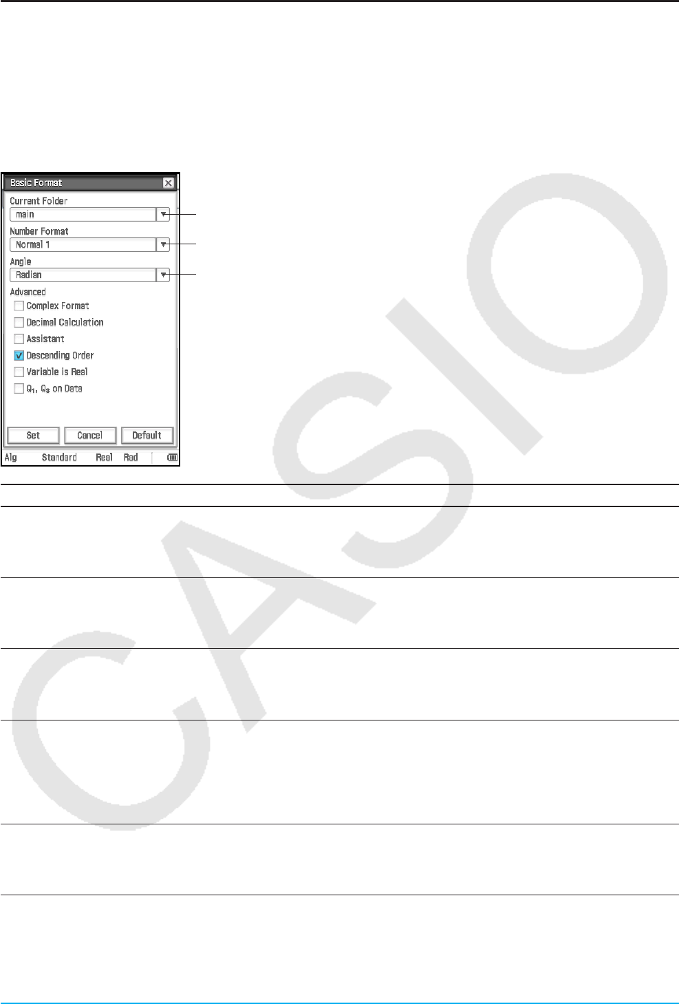 Basic Format: Number Format, Angle, Complex Format, Decimal Calculation, Assistant, Descending Order,