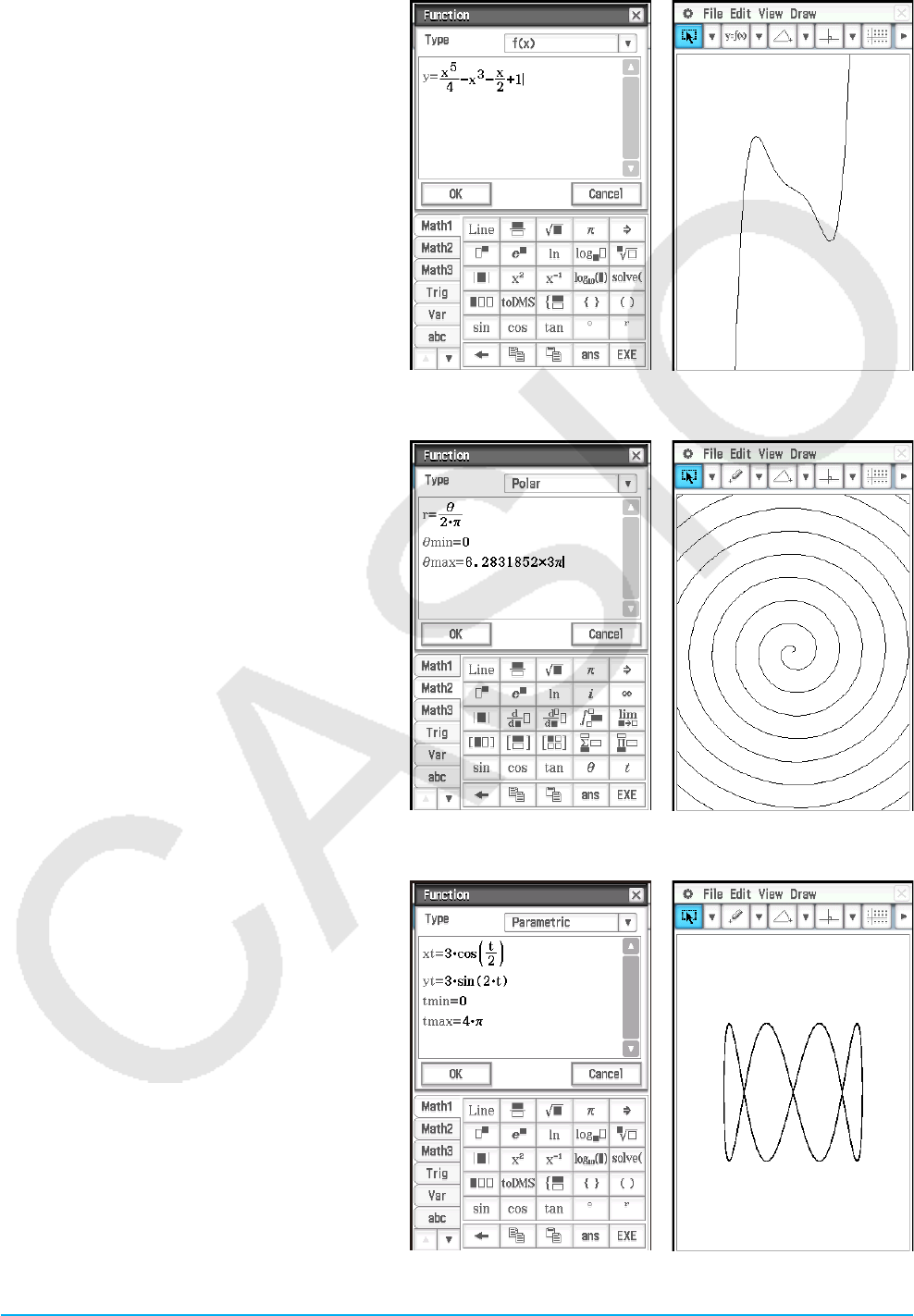 - 5-2 Zeichnen der Graphen von Funktionen vom Typ f(x) und von parametrischen Funktionen