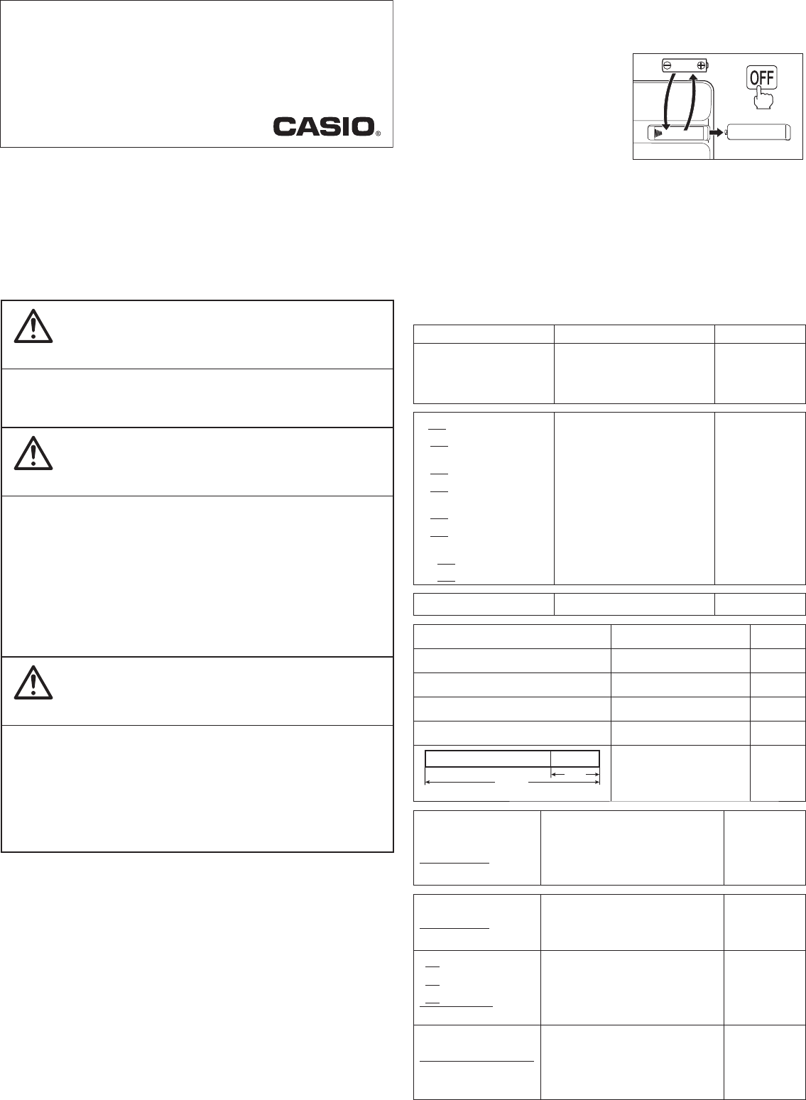 • 即使不使用计算器,您也应该每两年至少更换一次电池。