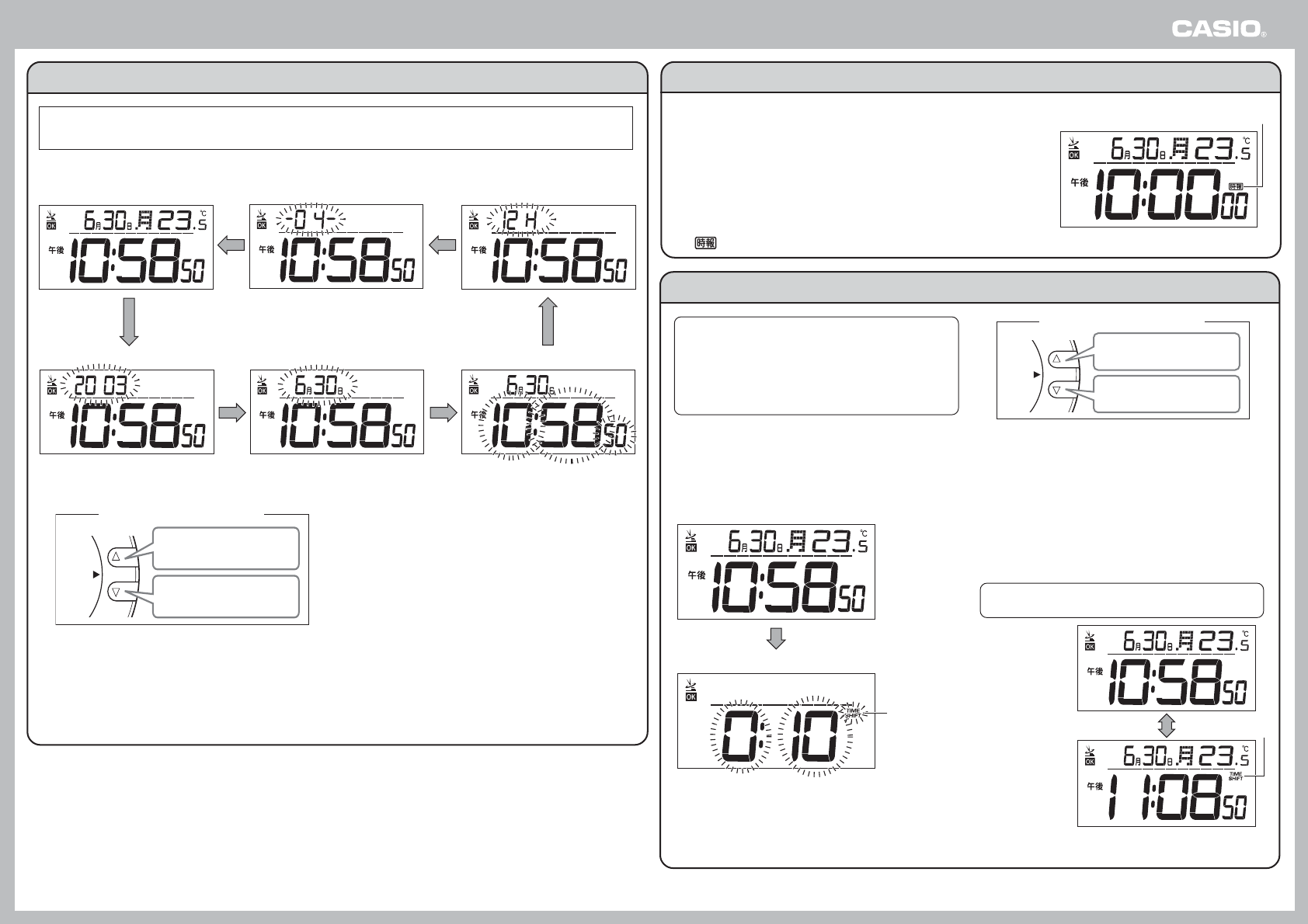 (1) 通常表示(アラームOFF)の時、TIME SHIFT(タイム