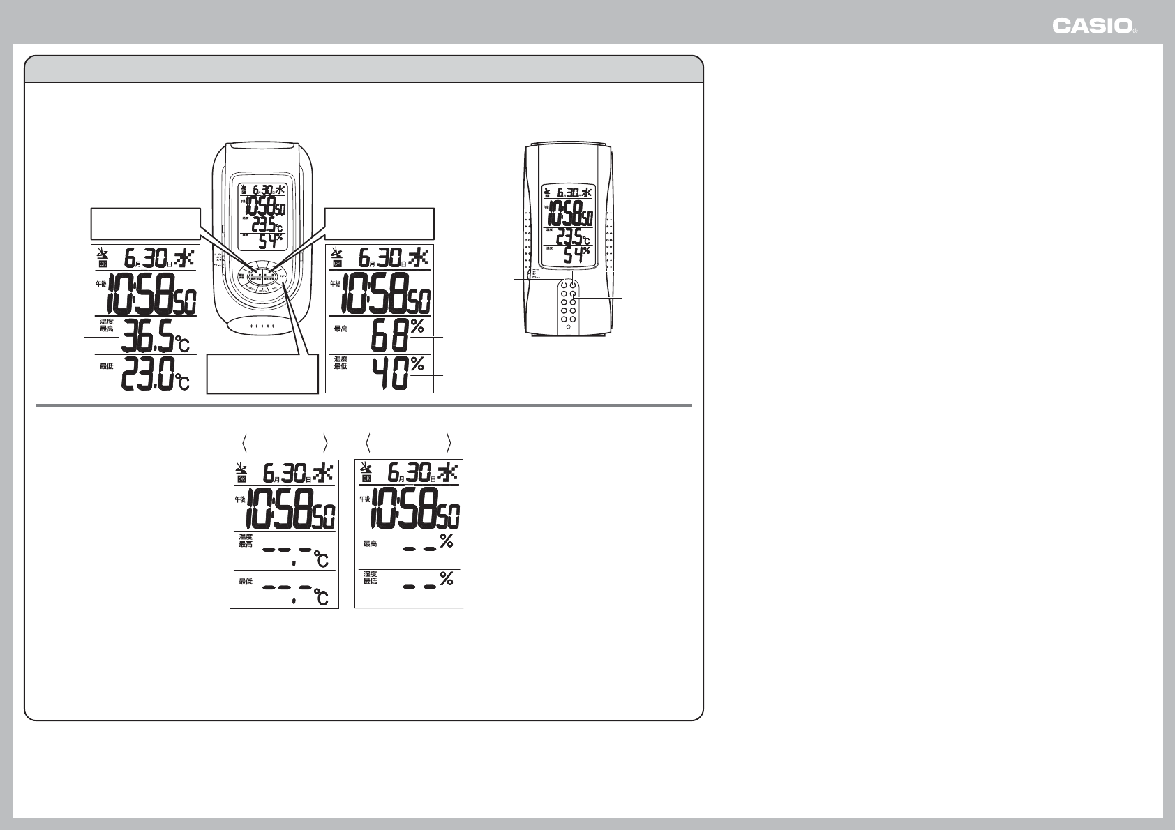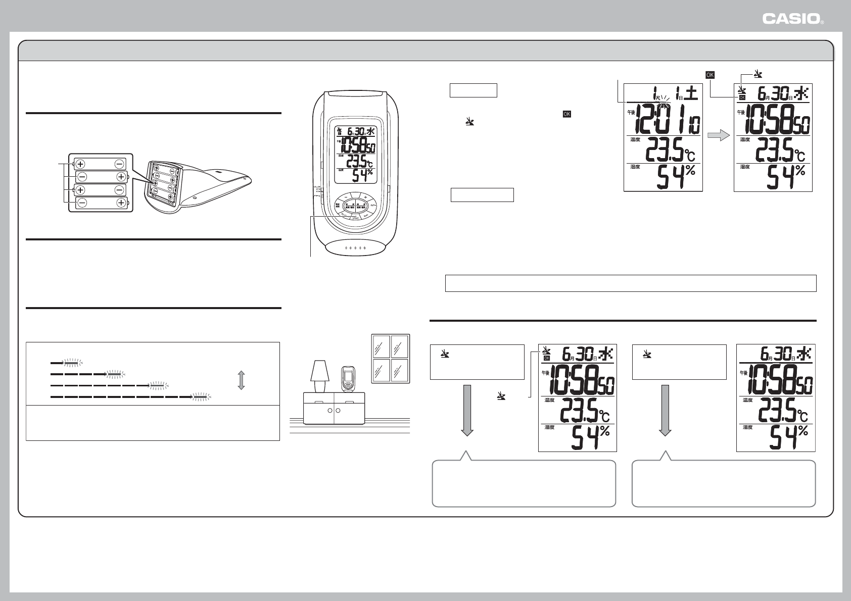 • 湿度表示は16秒ごと(電池を入れてから15秒間は3秒ごと)に計測した湿度を表示します。