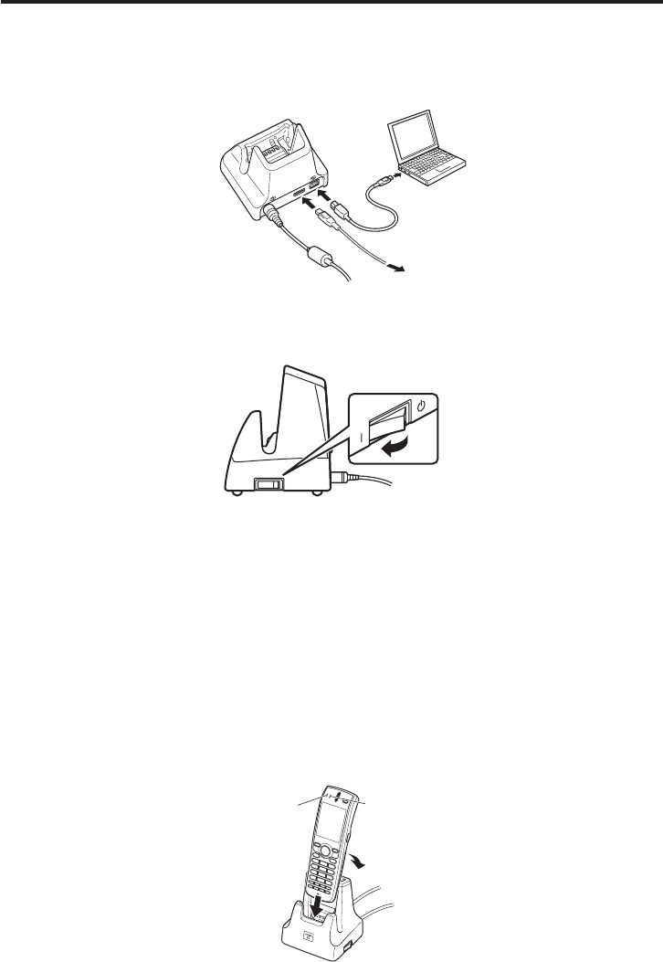 When inserting the DT-X100 with the Hand Belt attached into the USB Cradle, etc.,