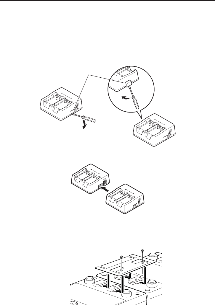 3. Turn over the connected Dual Battery Chargers and attach a connection bracket,
