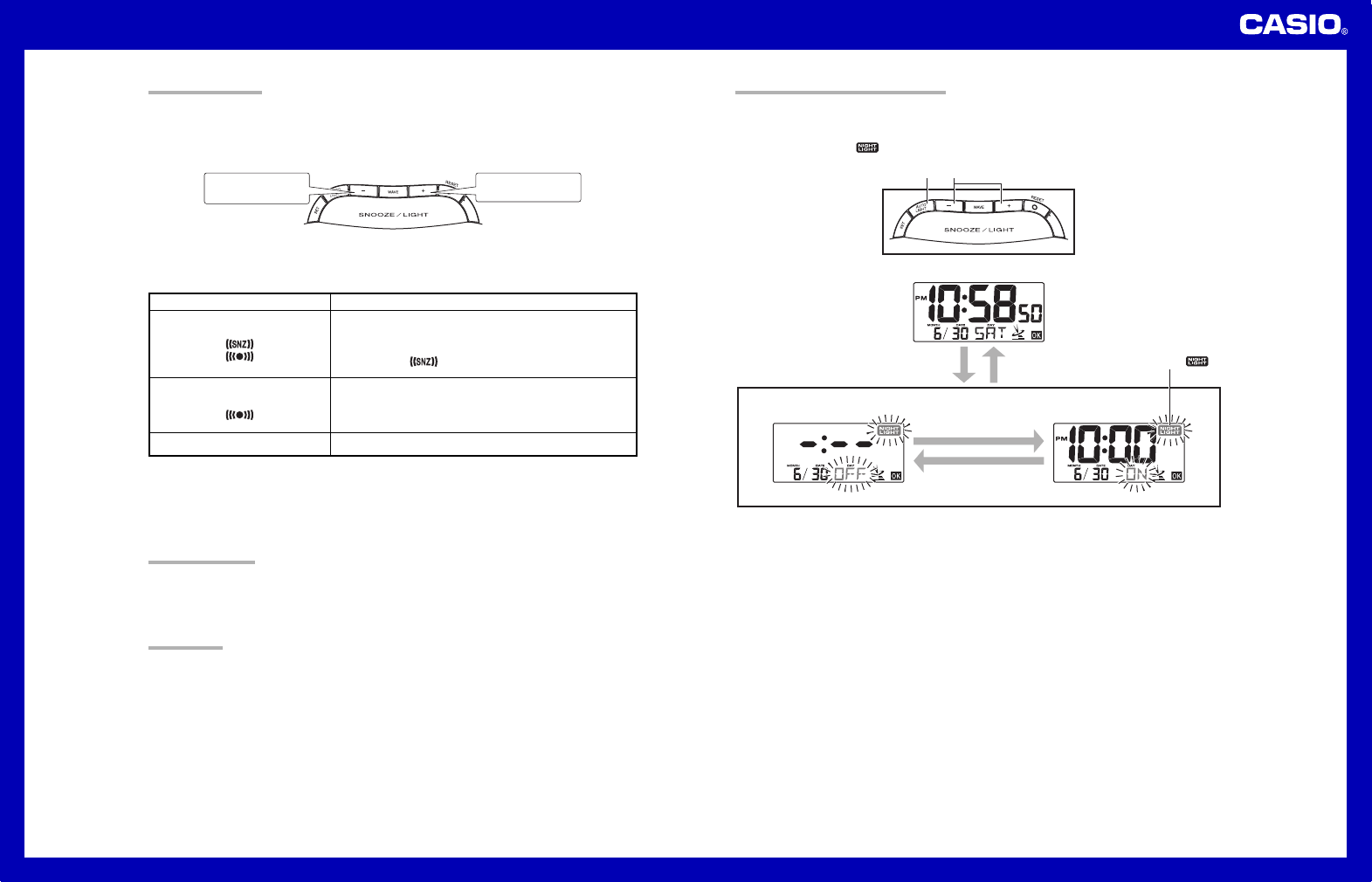 The alarm sounds and the light turns on when the alarm time you set is reached. You can also use the Alarm
