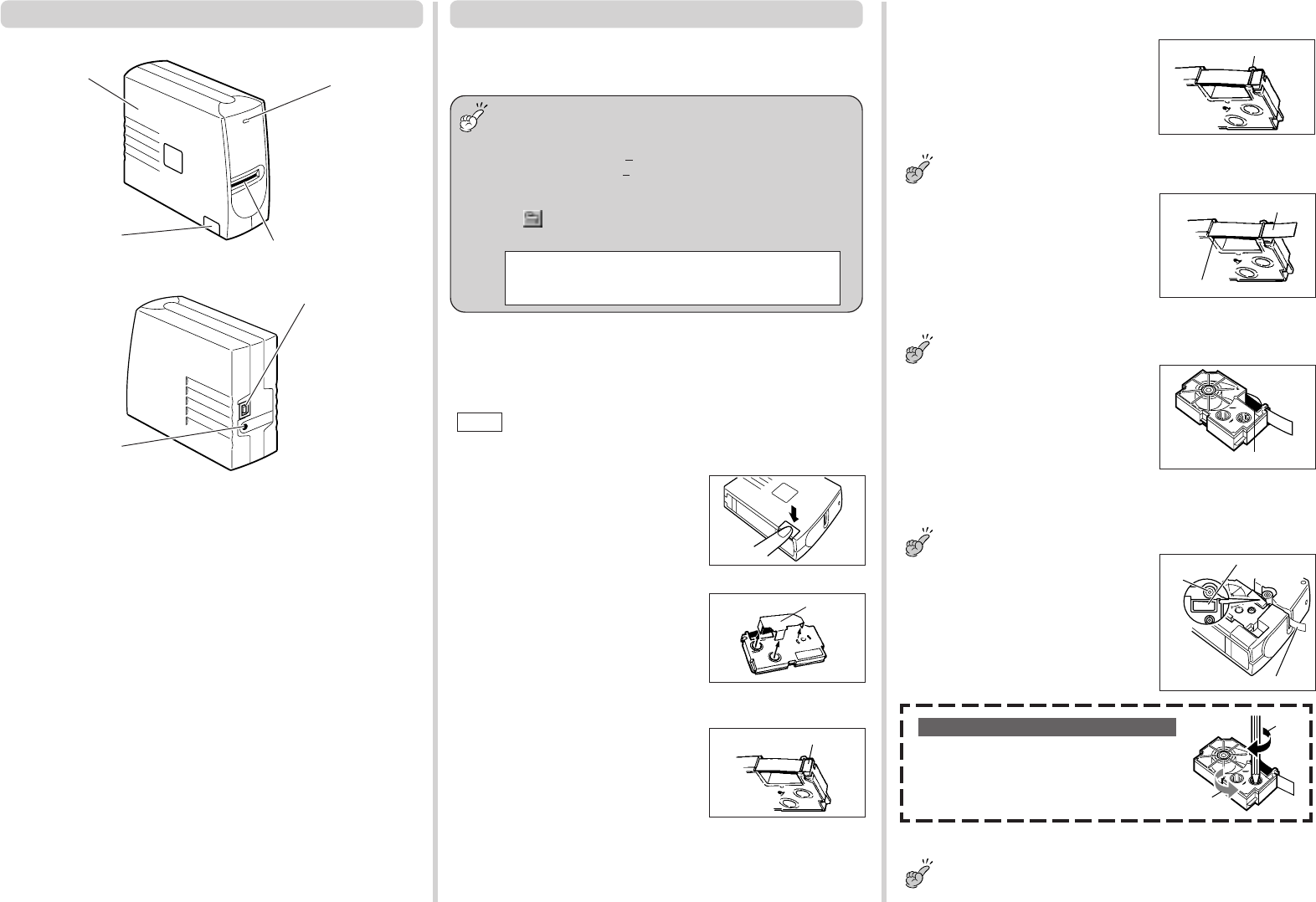 1. ネームランドテープ収納部オ−プンボタンを押して、カバーを開けます。
