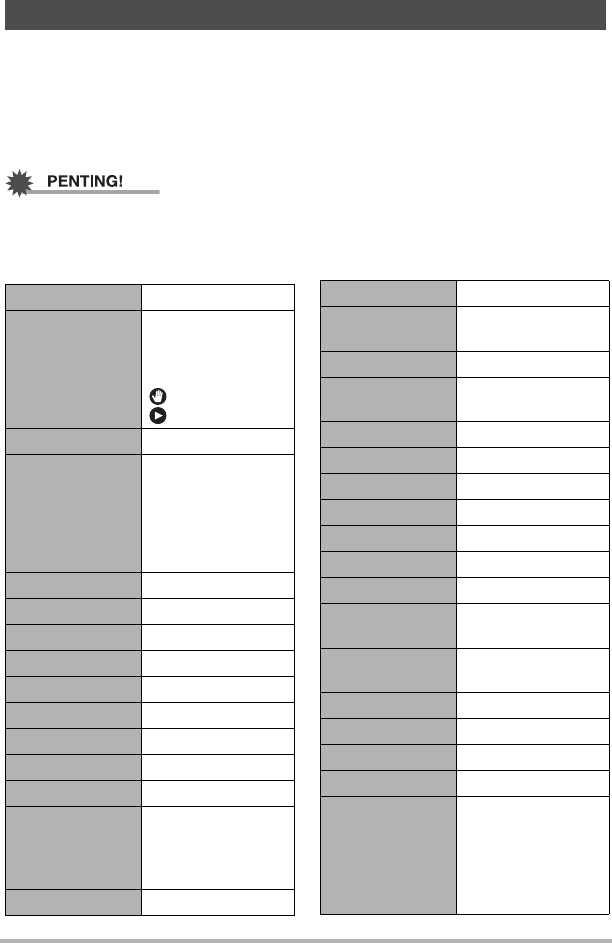 • Frekuensi blitz, zoom, Fokus Otomatis, dan penggunaan PK Kecepatan Tinggi,