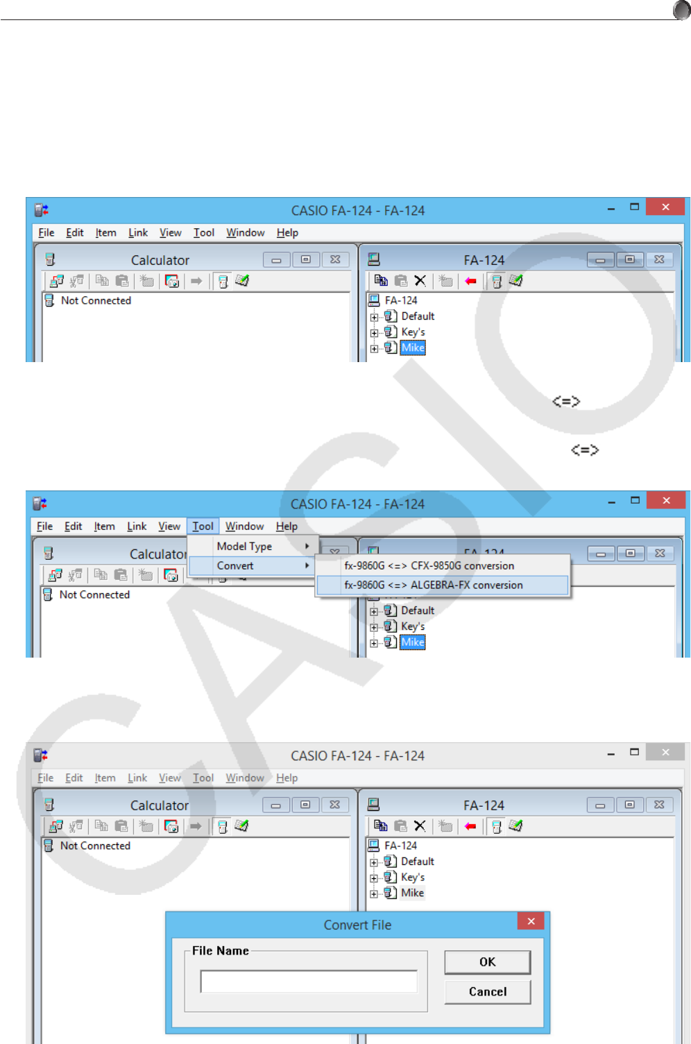 使用本软件将老型号计算器的数据传输到电脑上时,将把数据自动转换成 fx-9860G 系列 /fx-