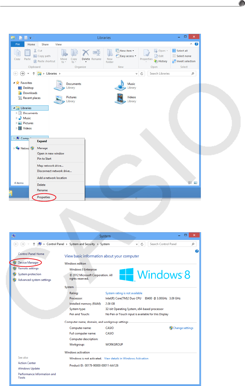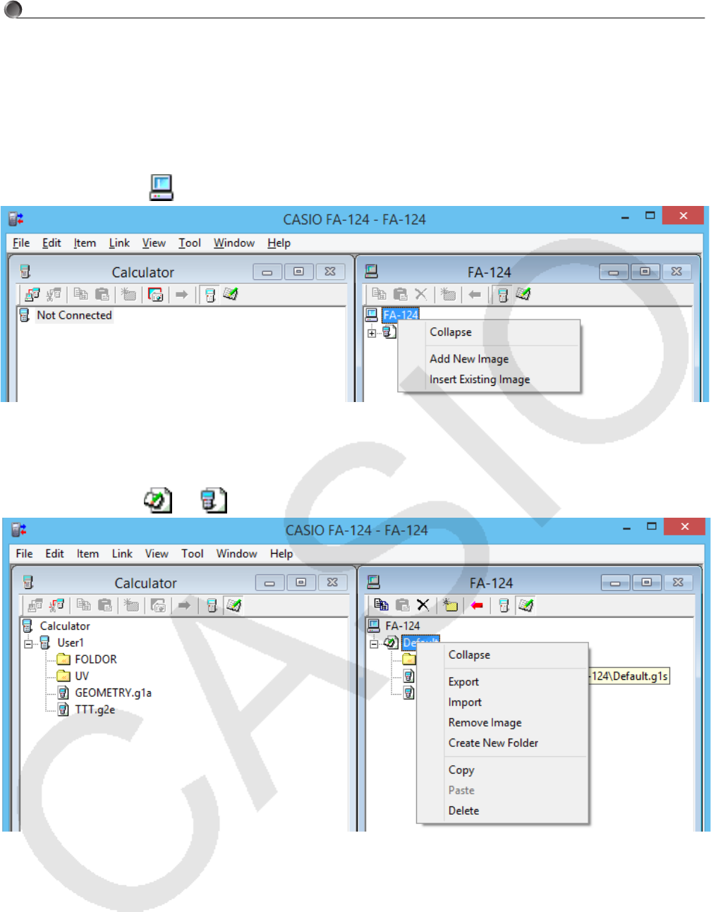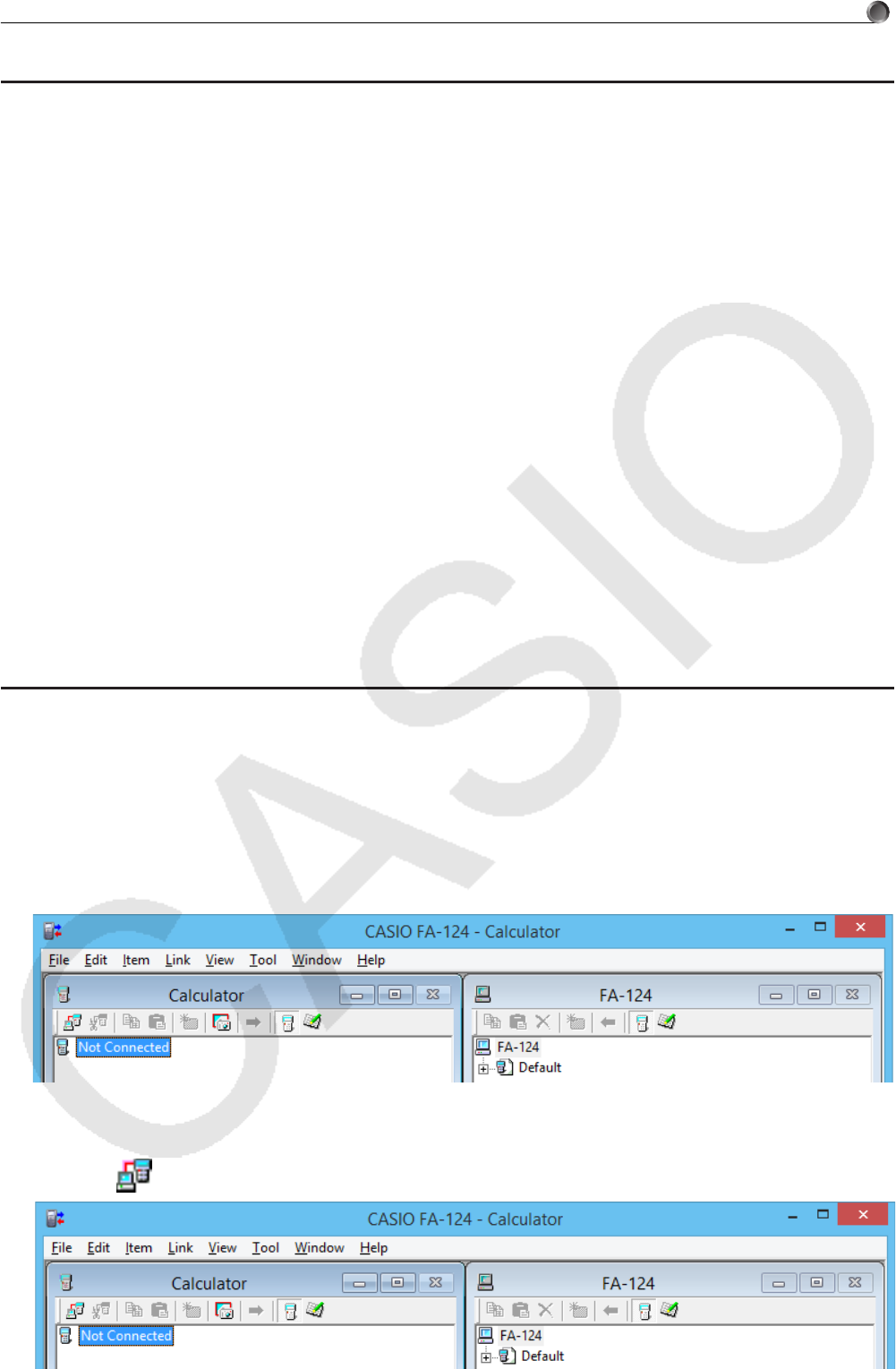• Be sure to install the FA-124 before you connect the calculator to your computer. Connecting