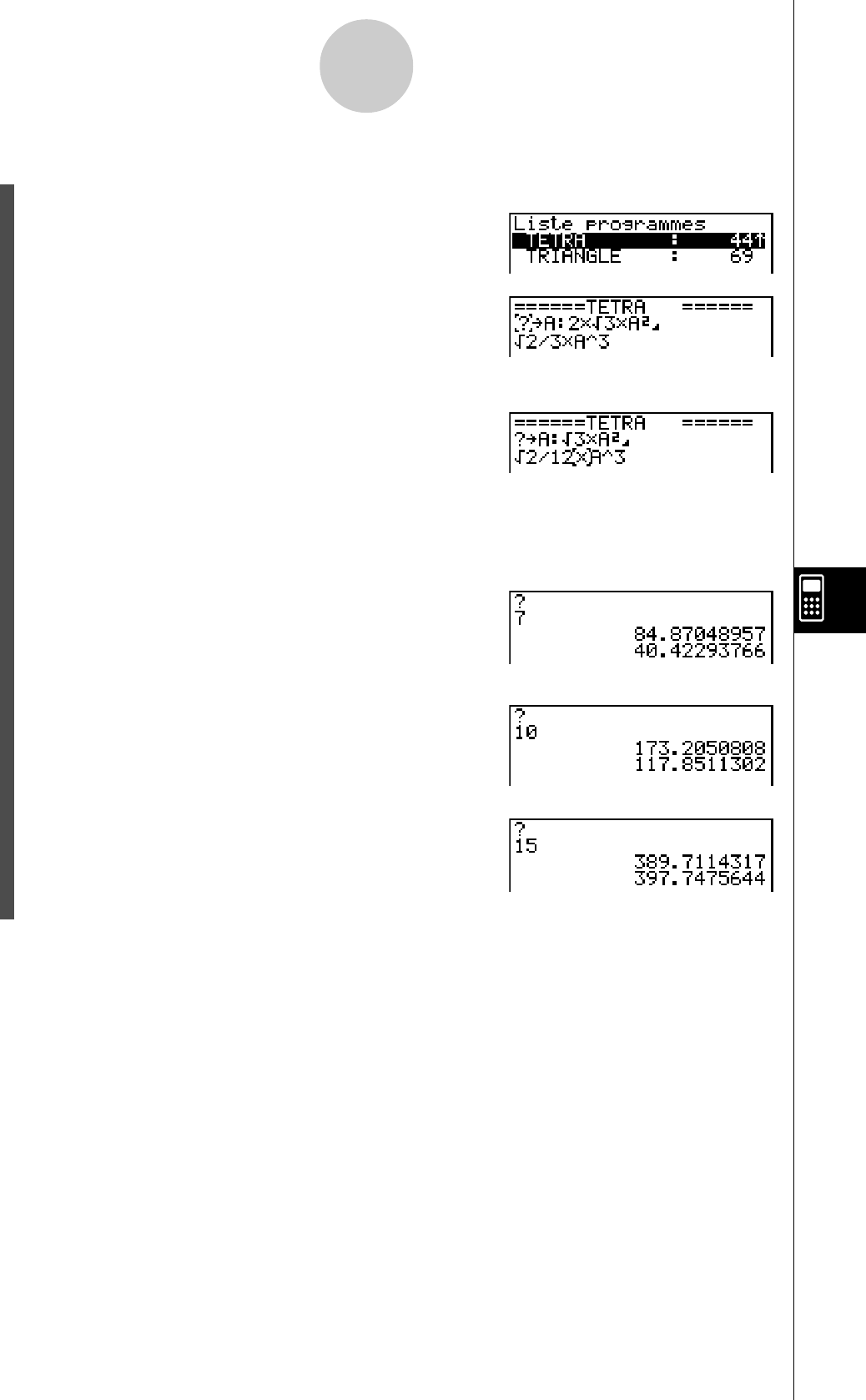 - 8-6 Utilisation des fonctions de la calculatrice dans un programme