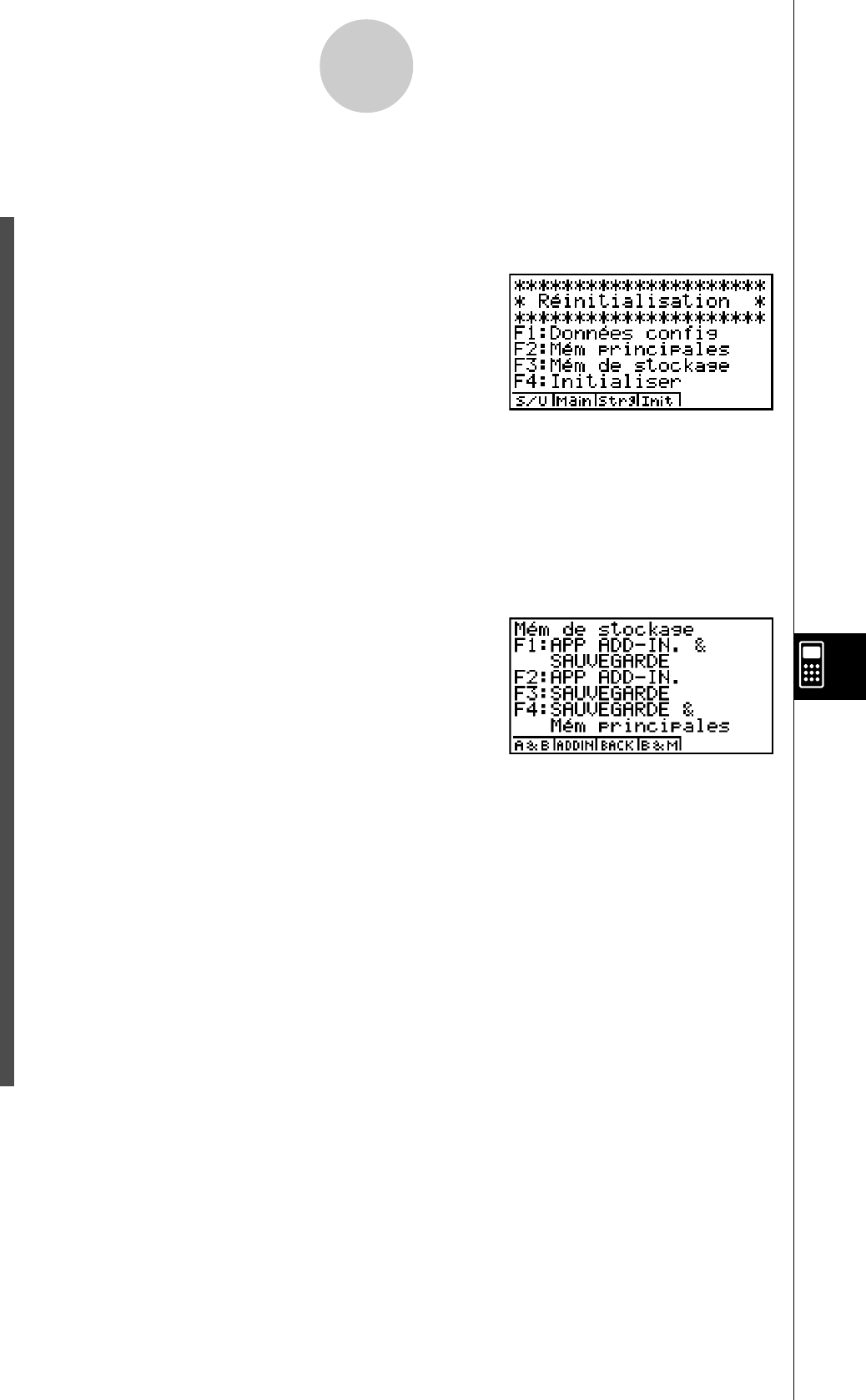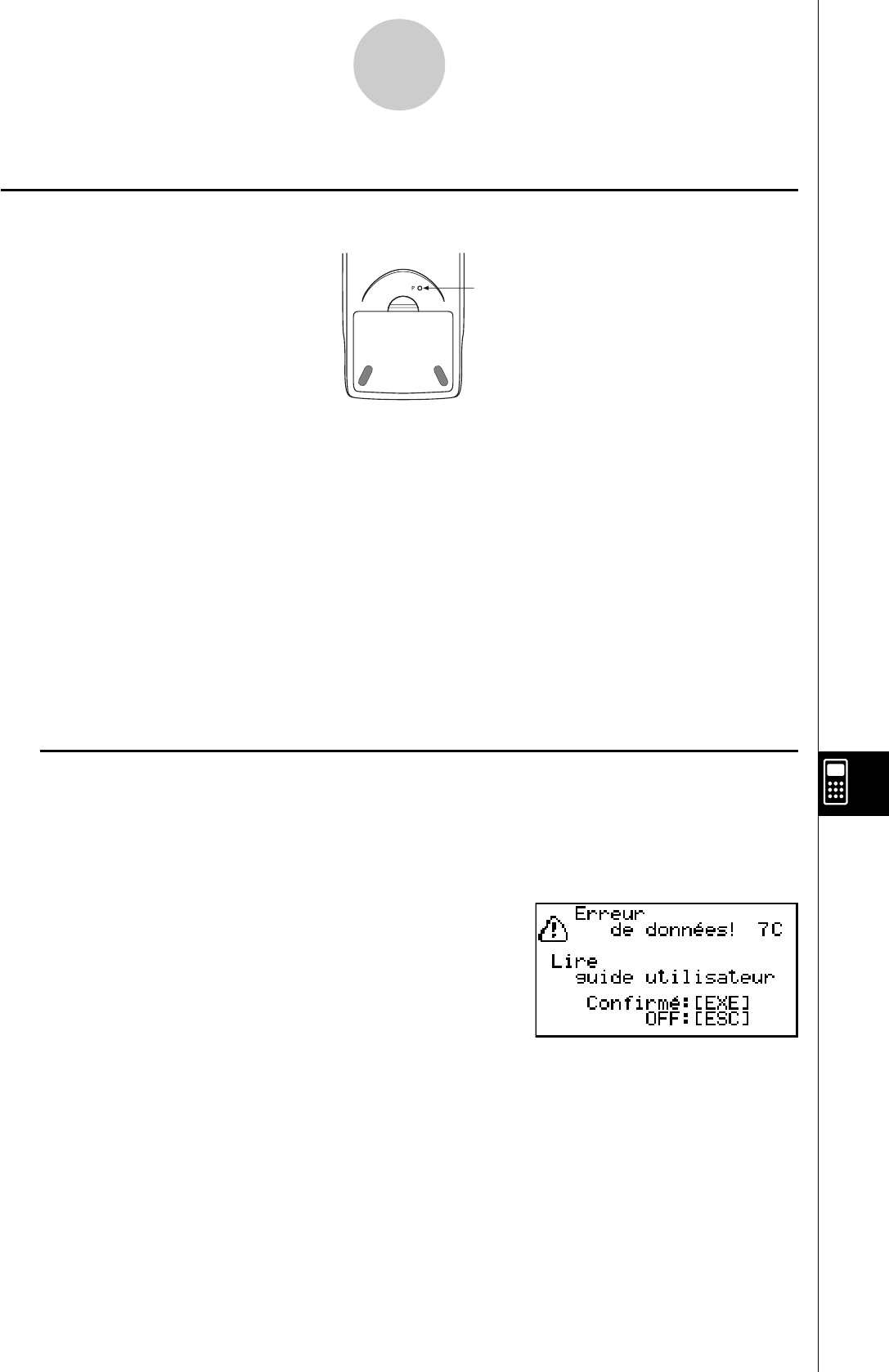 données mémorisées seront effacées et la calculatrice fonctionnera mal. En cas de