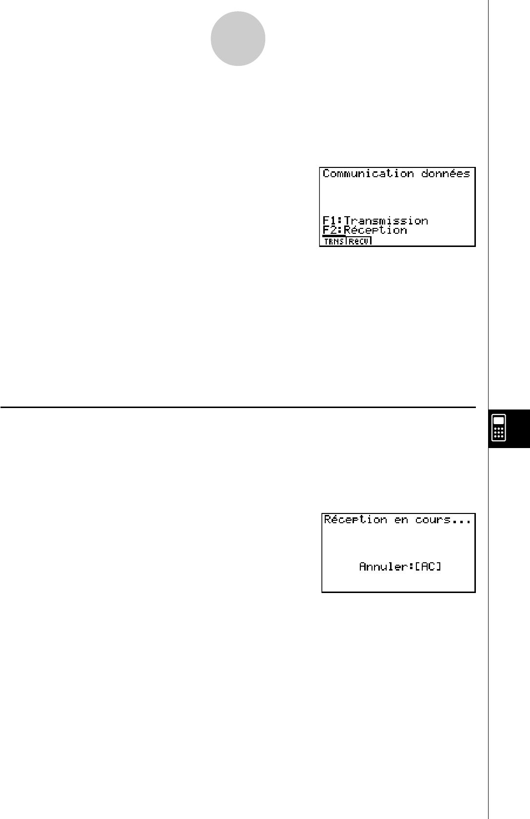 [F4],[F5],[F6], l'écran affichera : "Réception en cours"