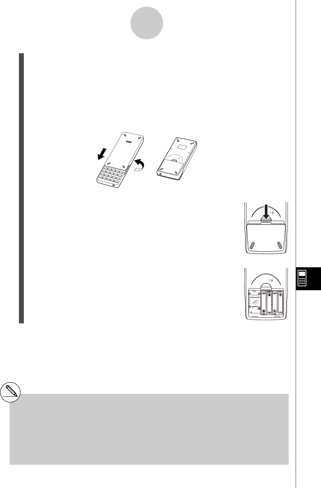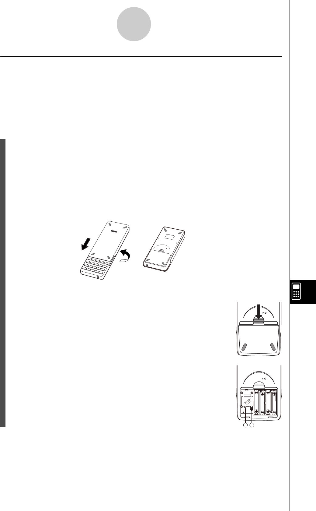 indiqués par 2 et retournez la calculatrice, face vers le haut. La calculatrice doit