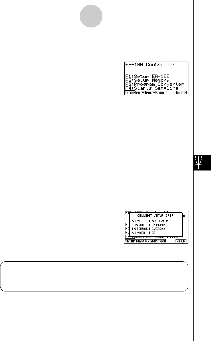 2. Pressione 1(SETUP). Isso exibe o menu secundário "Setup EA-100".