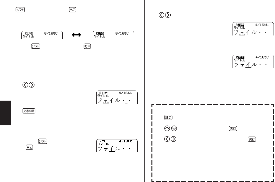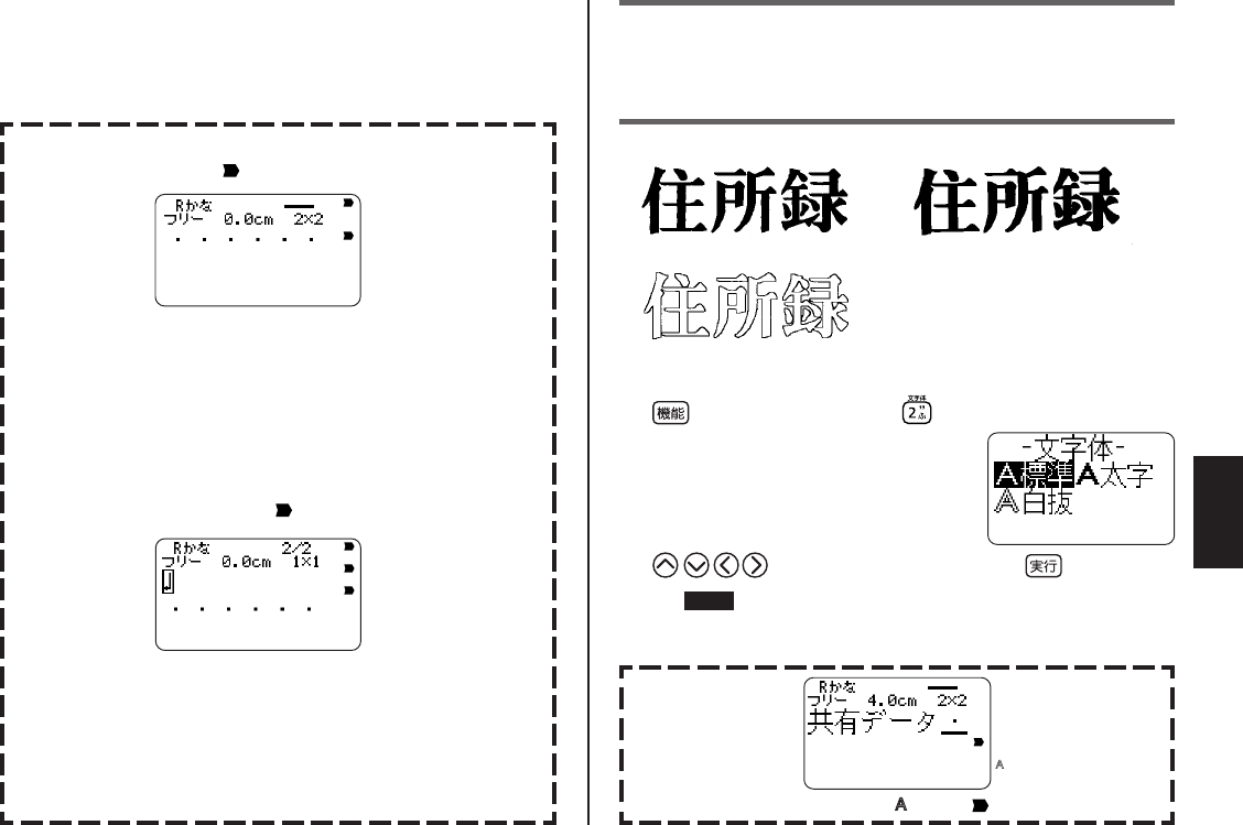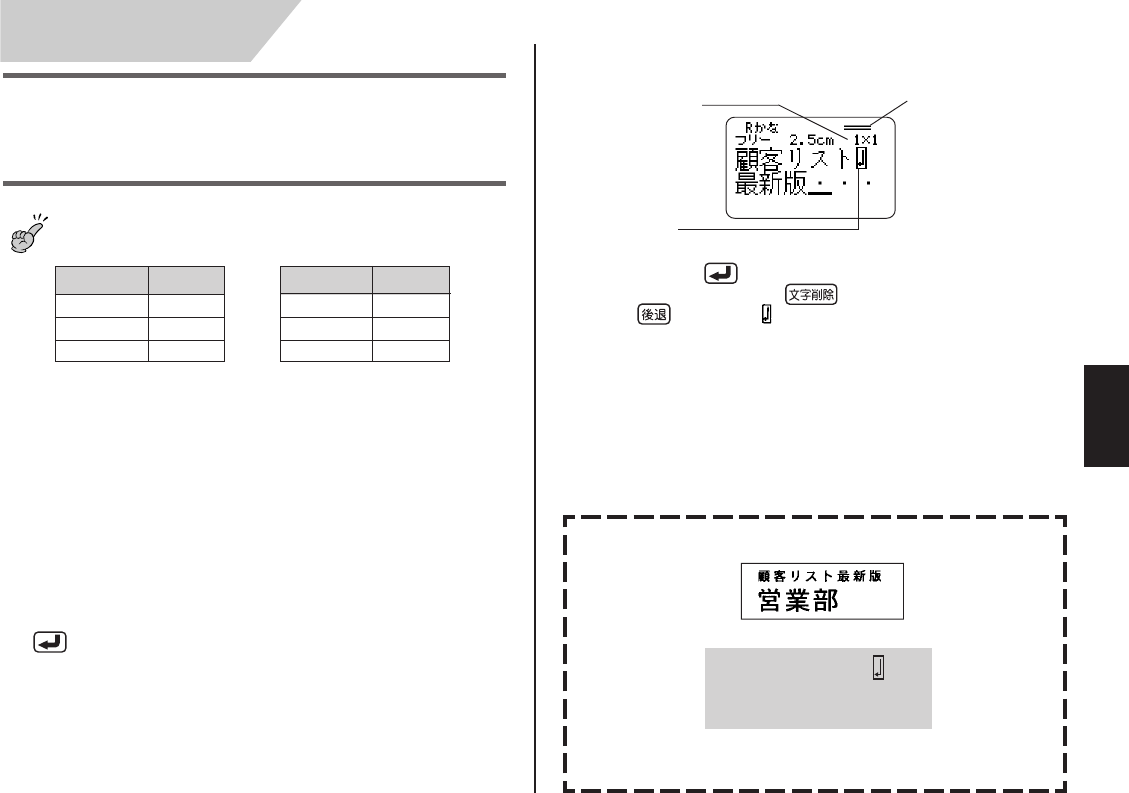 6 ・・・・・・・・・ 使用できないテープ幅は、囲まれません。