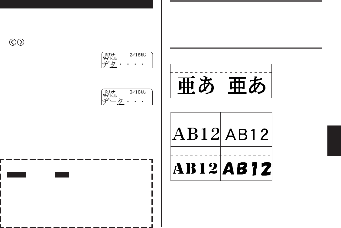 18 ・・・ 使用できるテープ幅は、実線または点線で囲まれます。