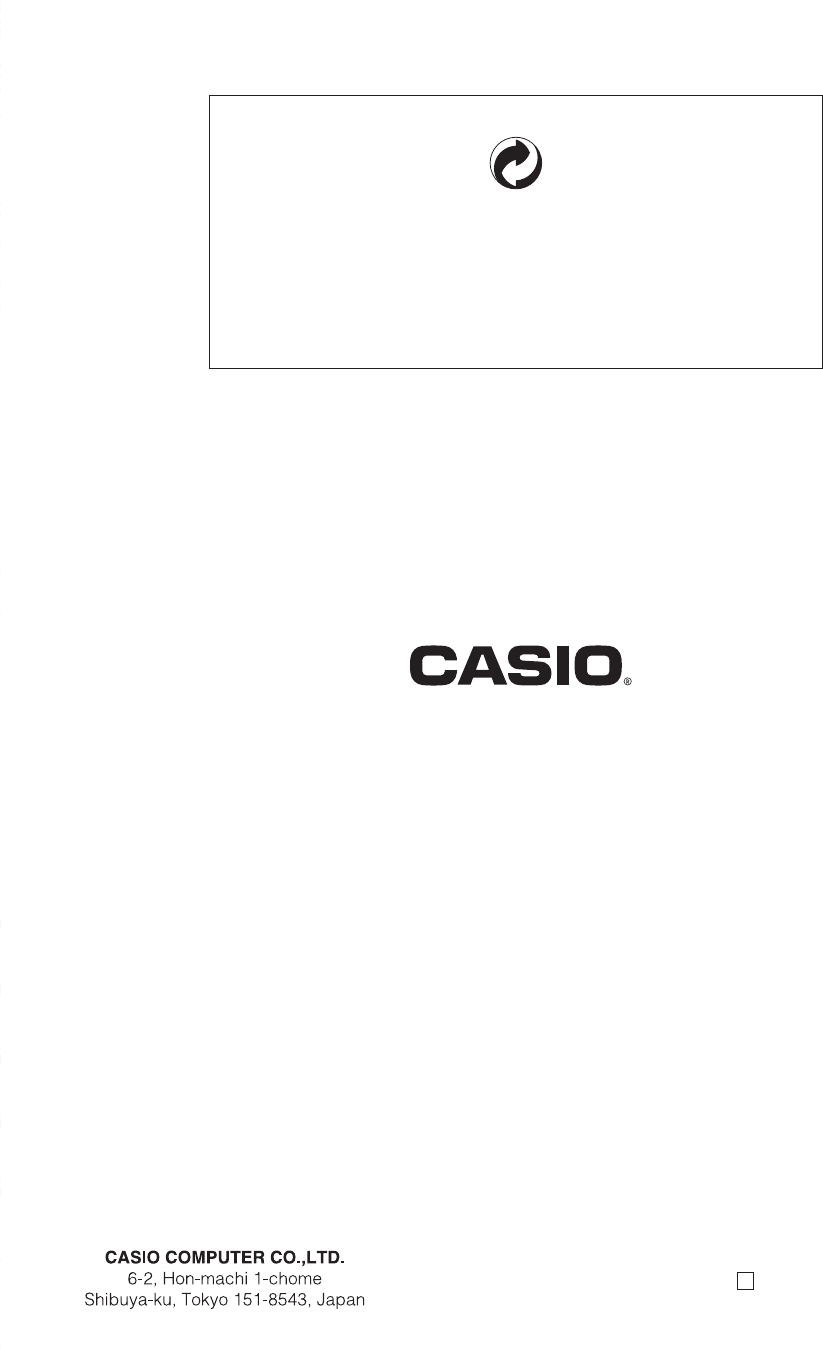 .ﺕﺎﻓﻼﺗﻷﺍ ﻚﻠﺗ ﻞﺜﻣ ﺙﻭﺪﺣ ﺔﻴﻧﺎﻜﻣﺈﺑ ﺖﺤﺼﻧ ﺪﻗ CASIO ﻮﻴﺳﺎﻛ ﺖﻧﺎﻛ ﺍﺫﺇ ﻰﺘﺣ ،ﺞﺘﻨﻤﻟﺍ ﻭﺃ ﻞﻴﻟﺪﻟﺍ ﺍﺬﻫ ﻡﺍﺪﺨﺘﺳﺍ ﺔﻴﻠﺑﺎﻗ ﻡﺪﻋ ﻭﺃ ﻡﺍﺪﺨﺘﺳﻼﻟ