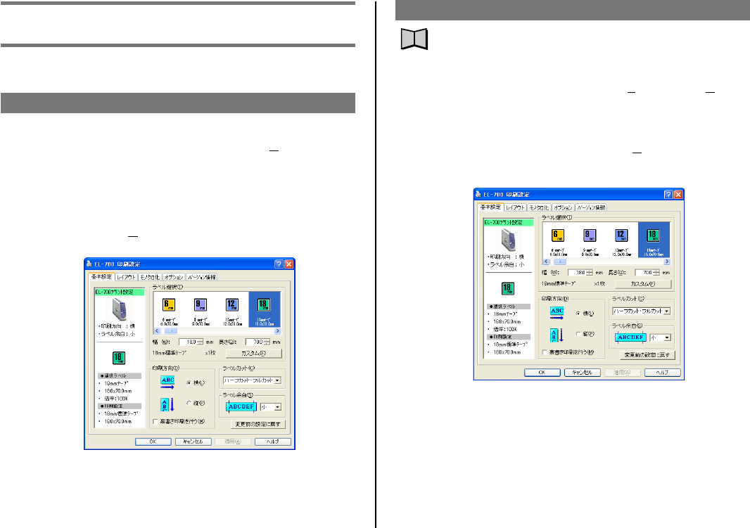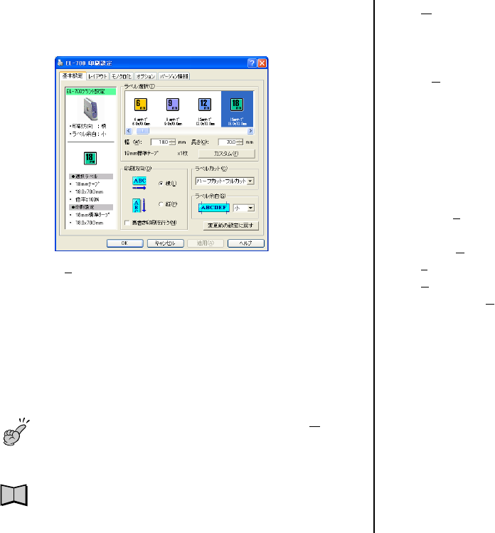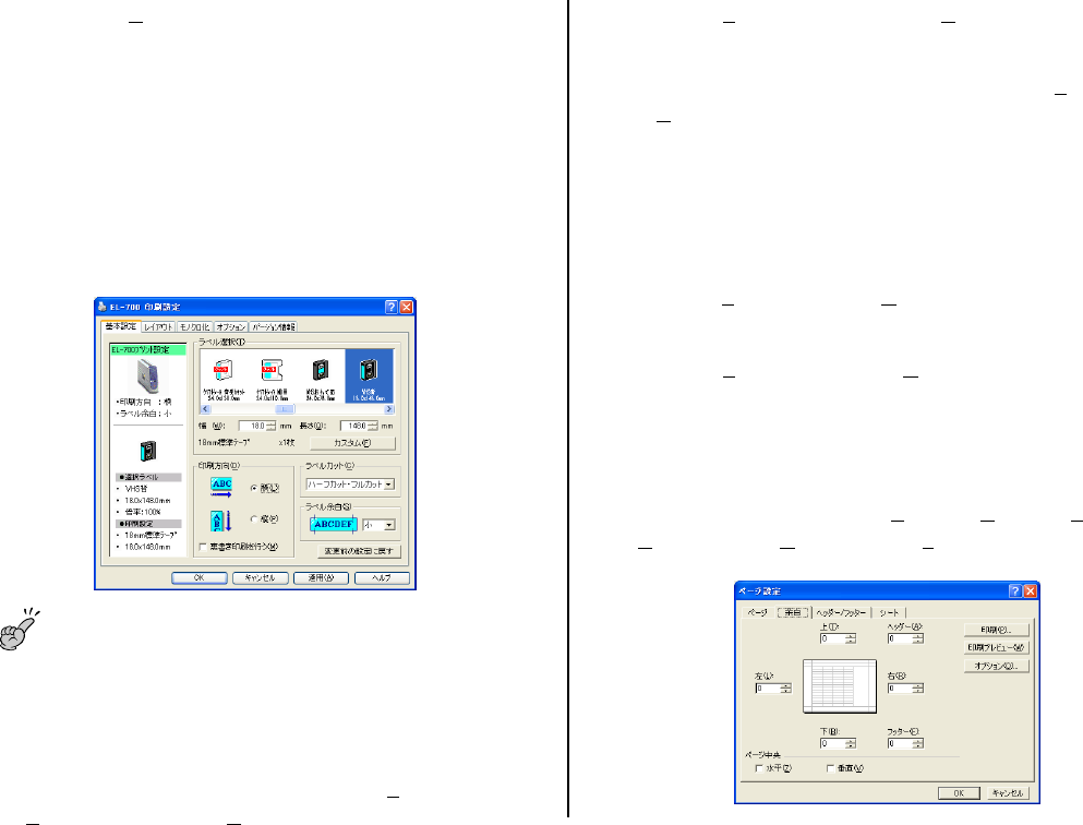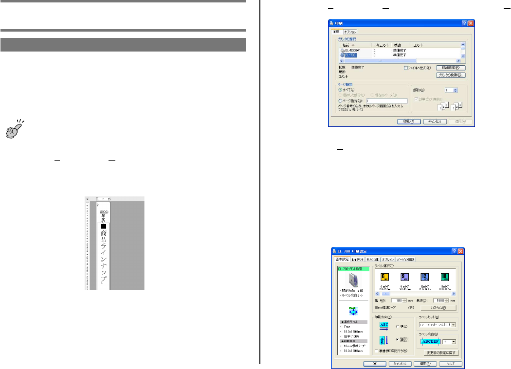 ・ 印刷設定で指定したラベルテープのテープ幅