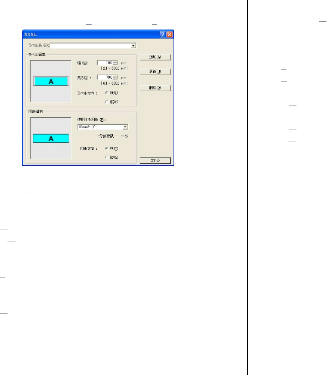 縦(P): [基本設定]ー[ラベル選択]の一覧に表示するとき