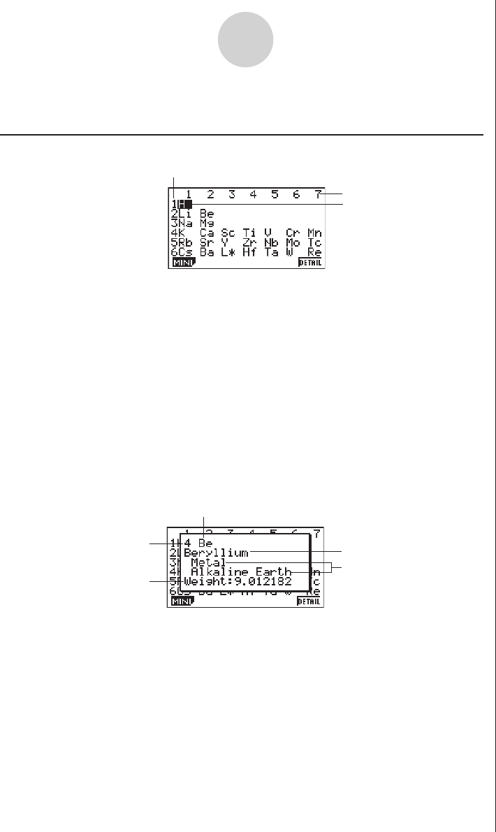 1(MINI)........................... Visualiza o ecrã MINI da tabela periódica.