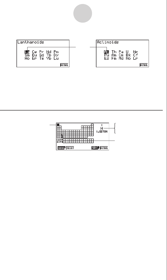 em branco para o peso atómico. Quando um actinóide é seleccionado, a informação