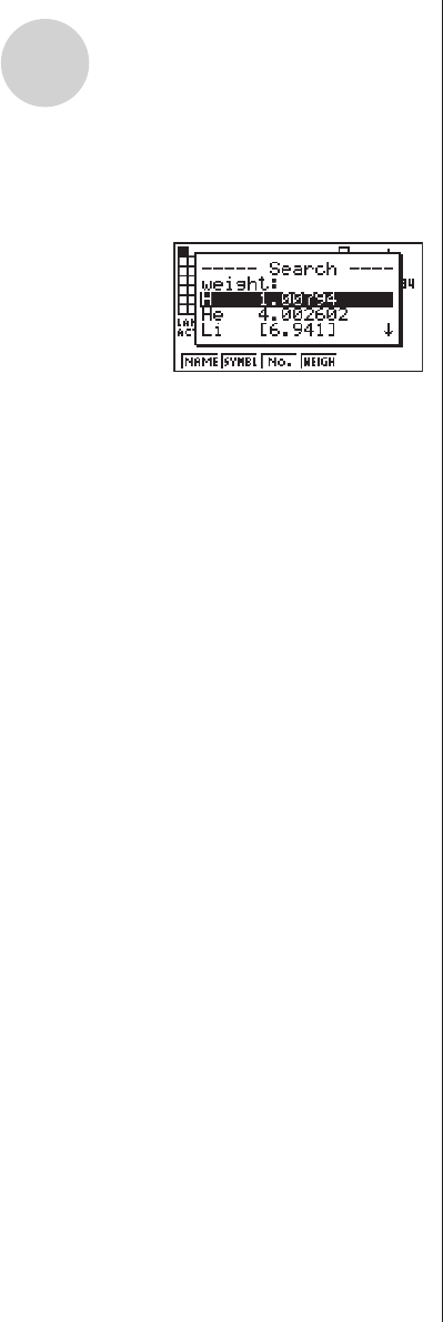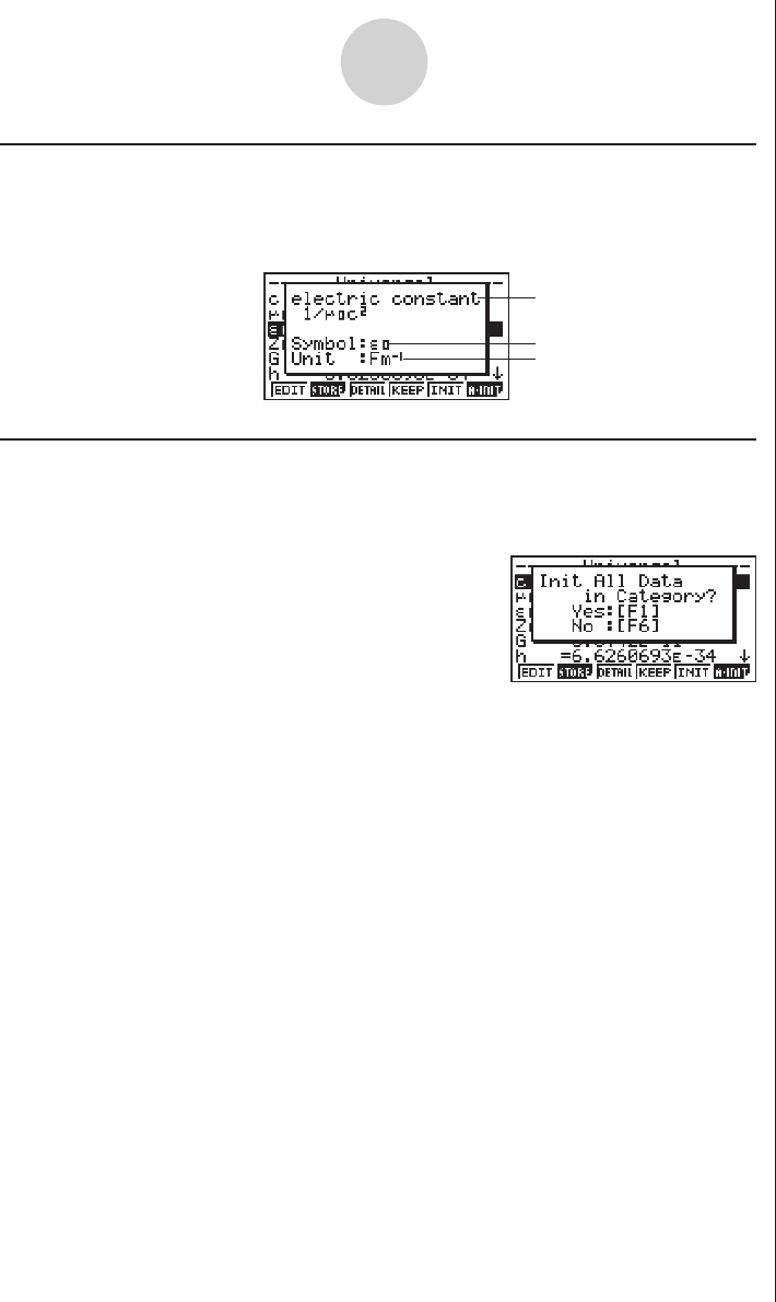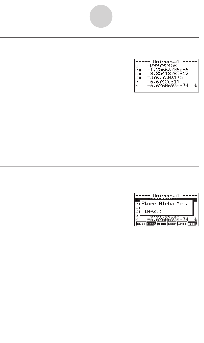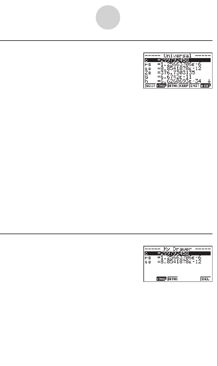• Seleccionar uma constante e premir 3(DETAIL) ou w visualiza uma caixa de diálogo