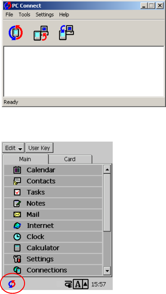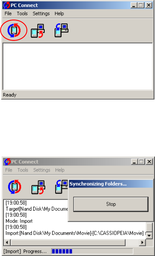 (8) When synchronization is complete, the PC Connect window will appear as shown