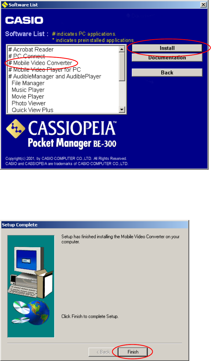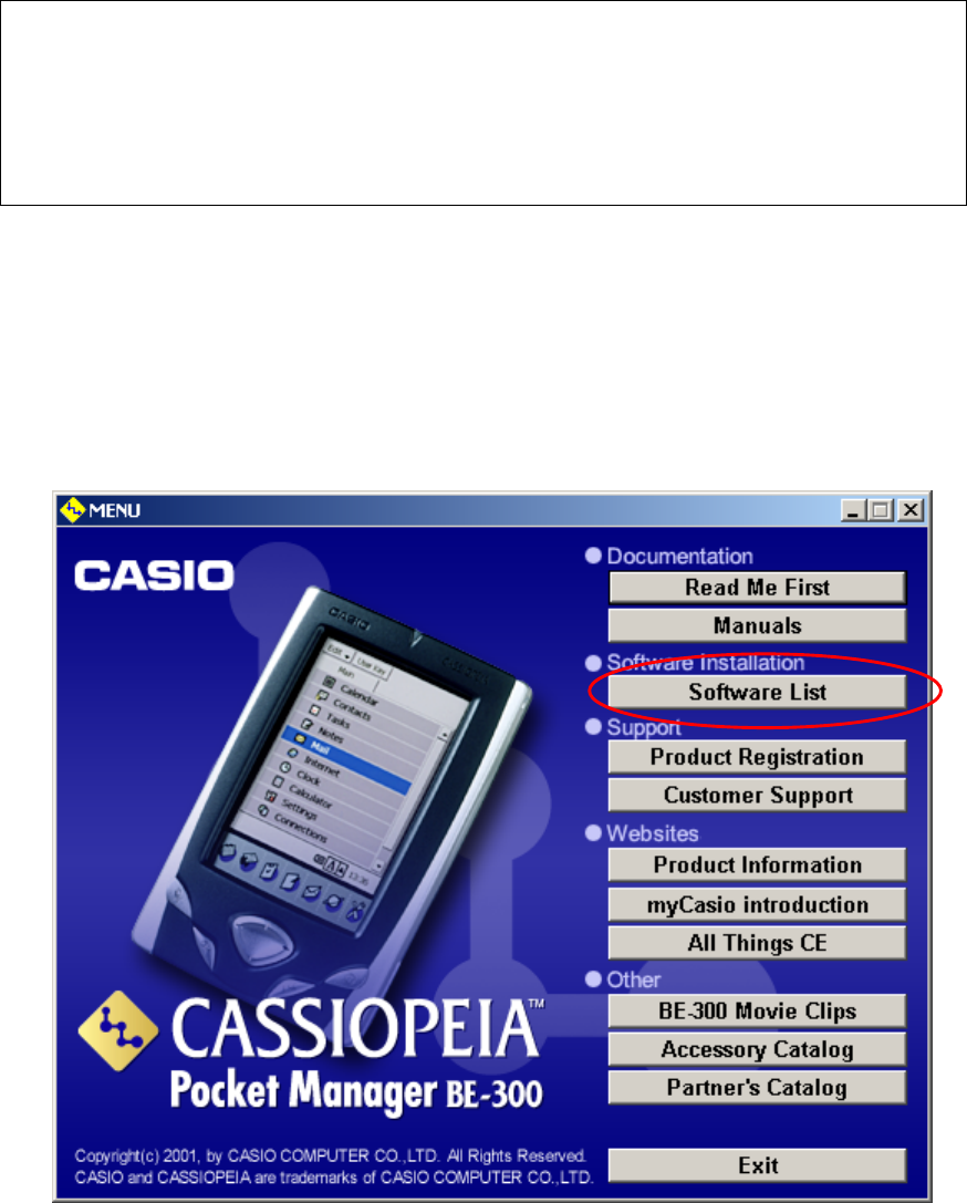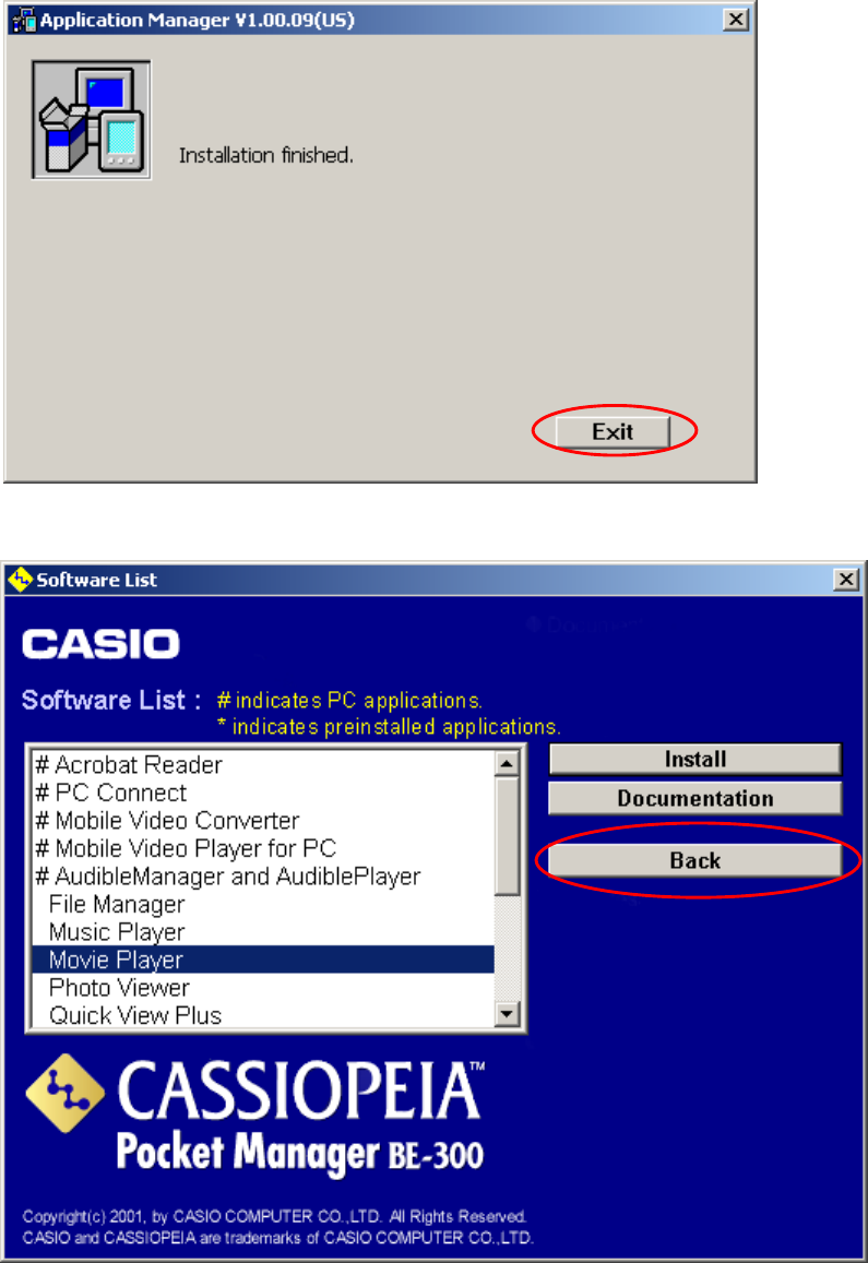 (3) Begin installing the Movie Player software onto CASSIOPEIA.
