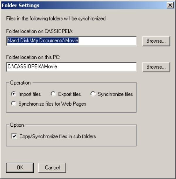 l PC Folder : "C:¥CASSIOPEIA¥Movie"