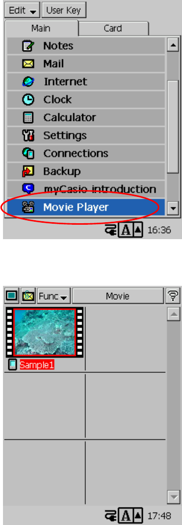 (10) At the CASSIOPEIA "Main" menu, double-tap the "Movie Player" application, and