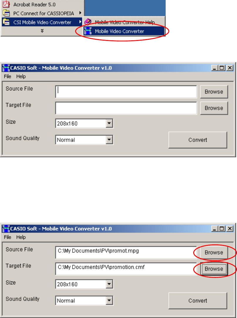 "Browse" button at the right and select the file to be converted, and the filename will