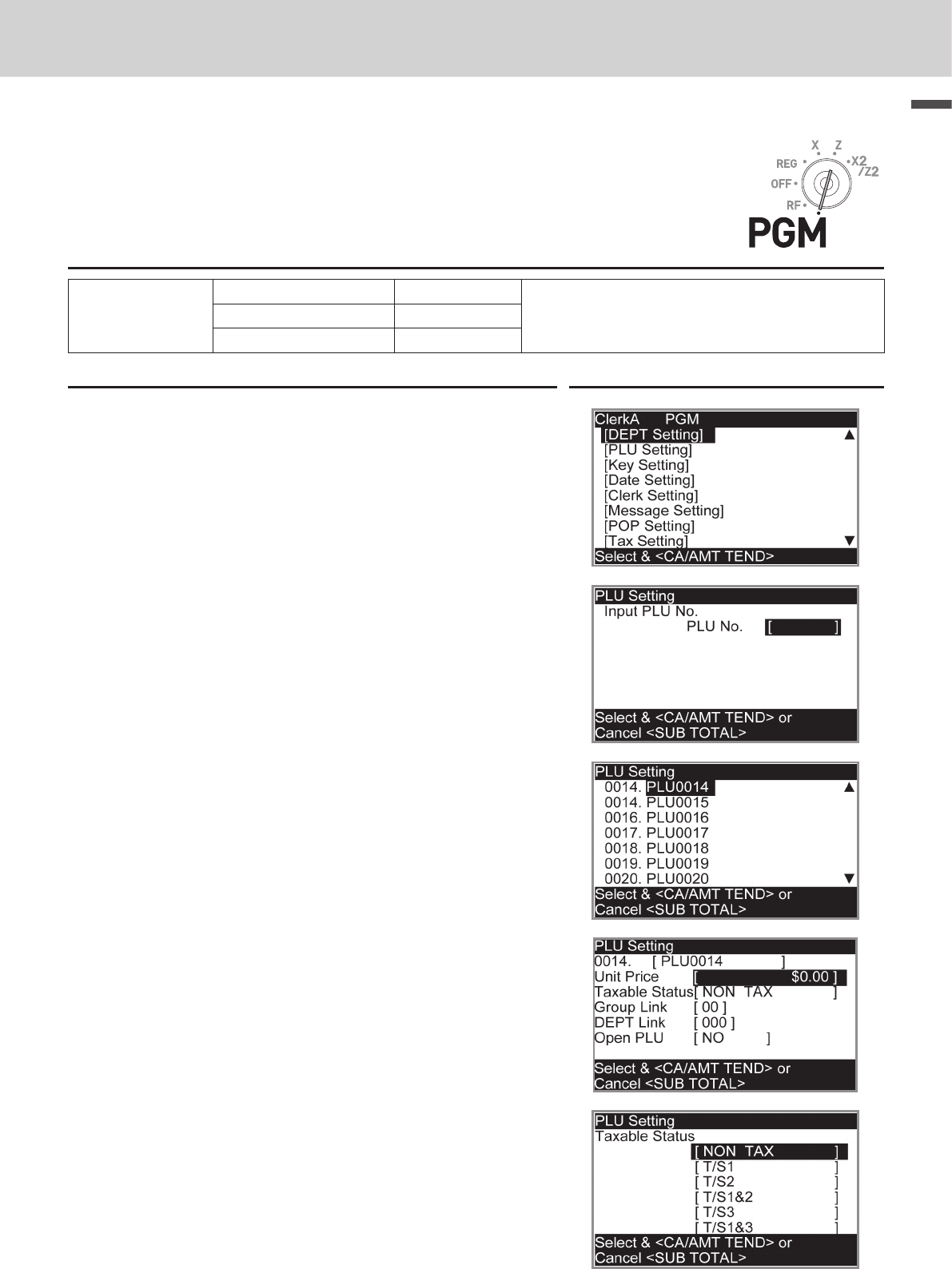 Programación de funciones de departamentos y PLU de una vez .............................. S-72