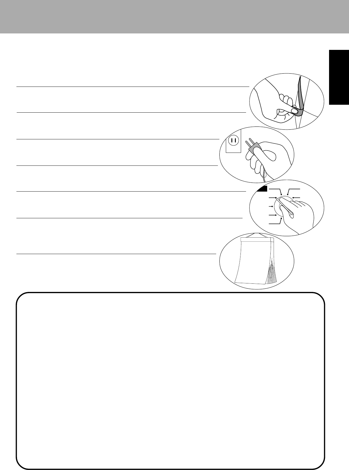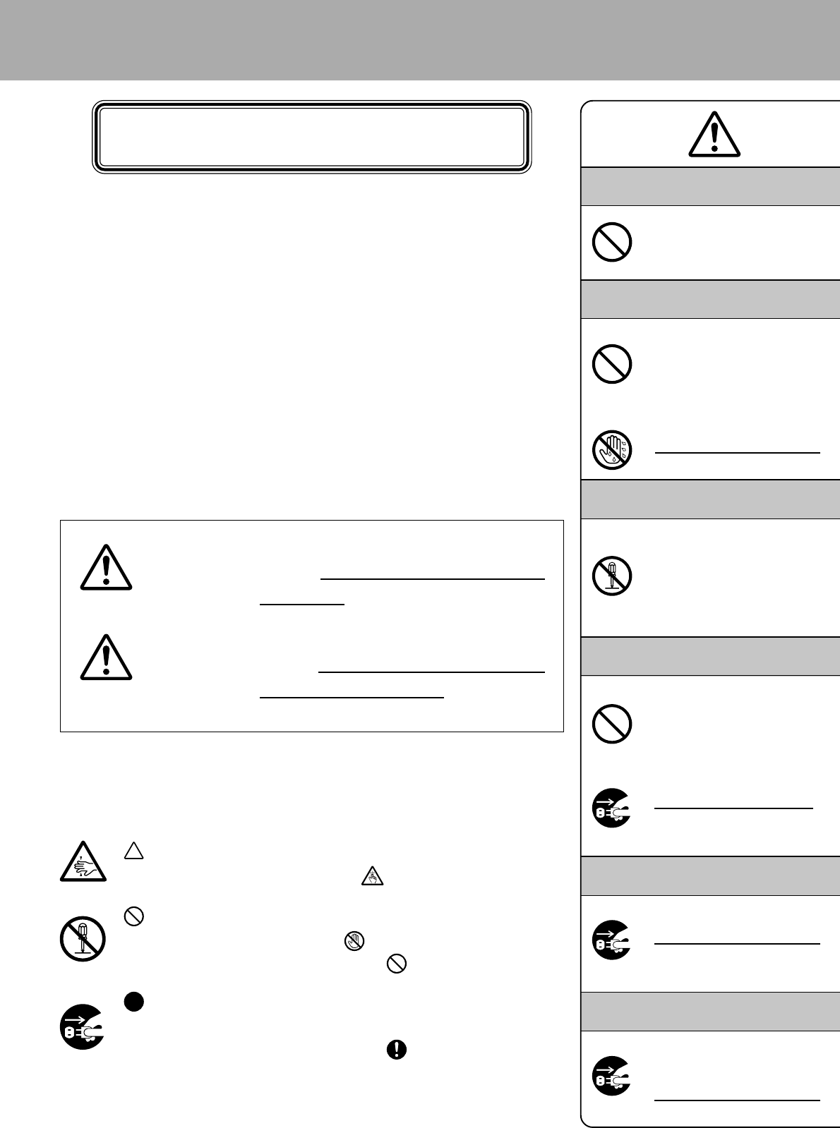 左の例は「差し 込みプラグをコンセン トから抜くこと」です。