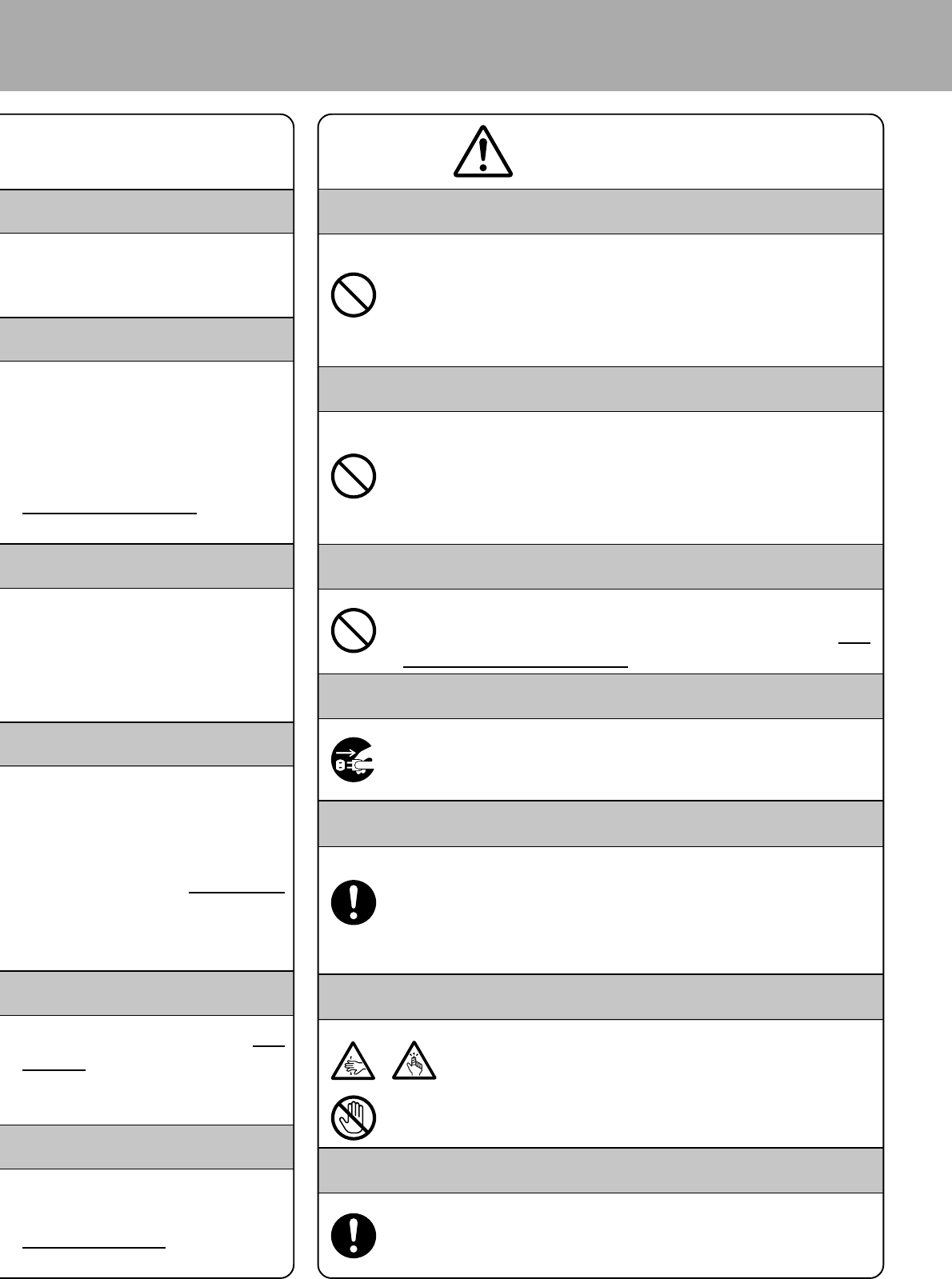 ( 左の例は「手挟み注意」です。 は「指ケガ注意」です。)