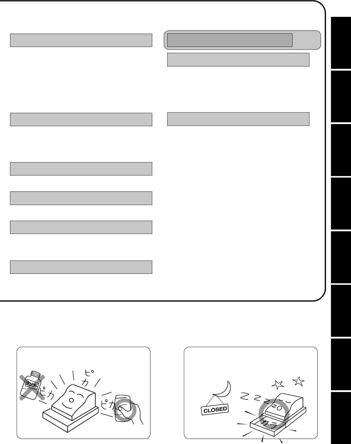 ●レジ操作中に、がと鳴ることがあります。これは、機械が操作ミスを検出したしるしで