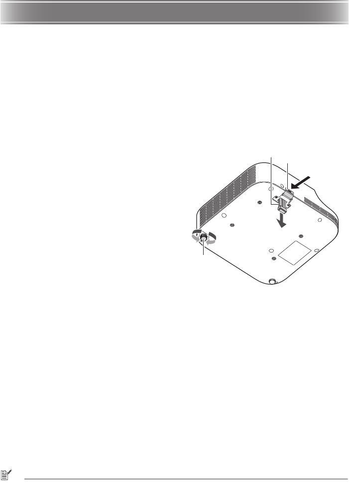 3Arka ayağı döndürerek, projektörün yatay
