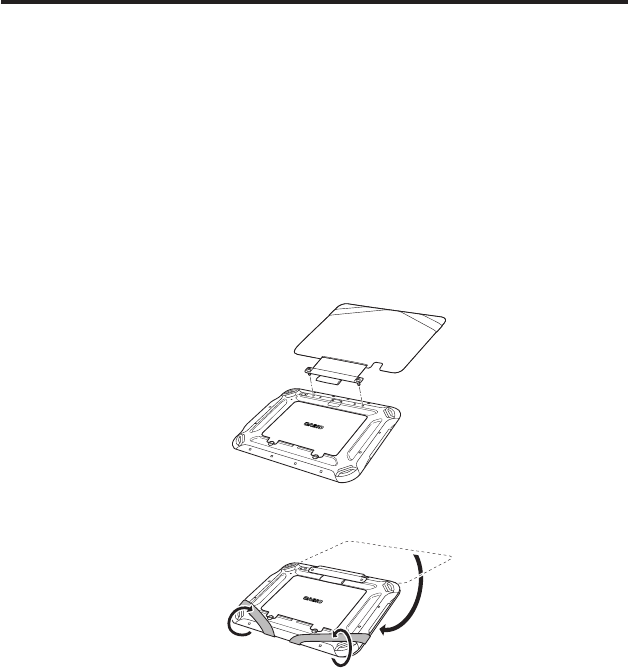 Rückseite des Tablets (siehe G-15, 16) mithilfe der beiden an der Bildschirm-