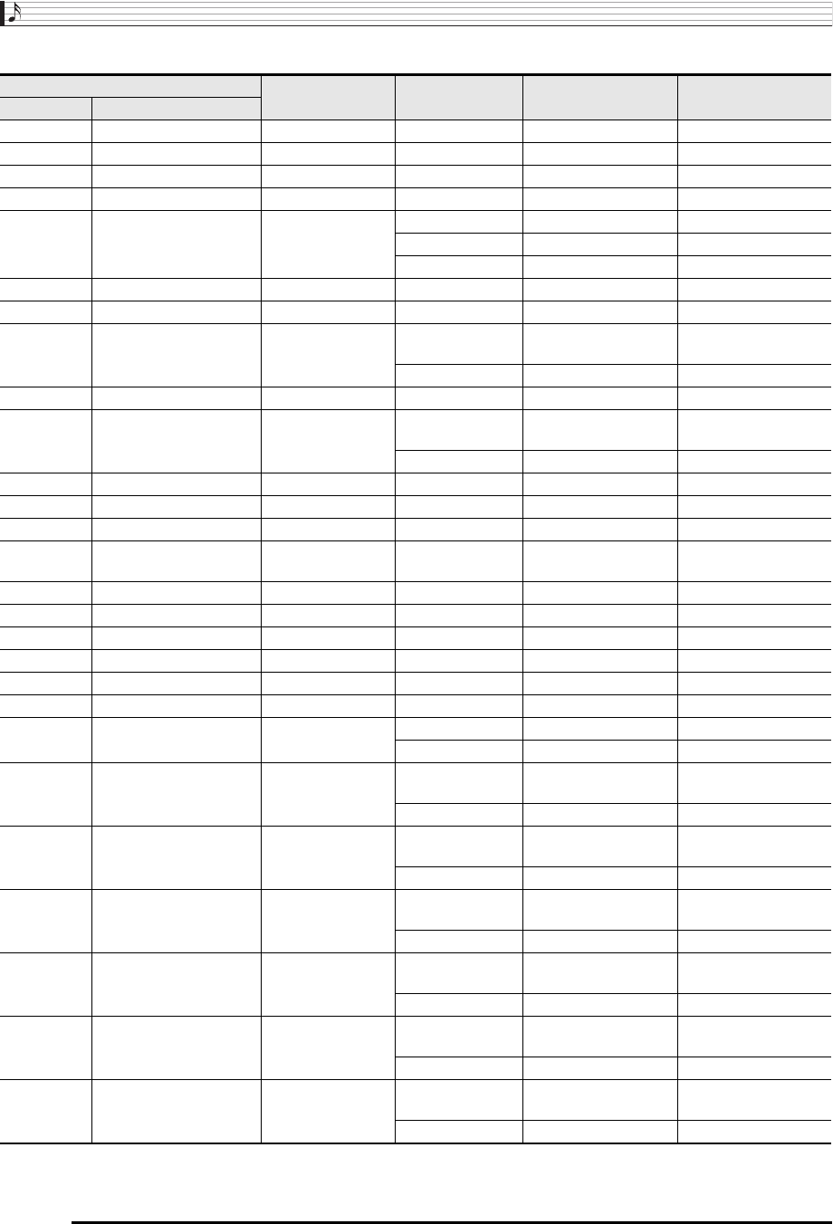 • Since the chord input range is limited, this model may not support some of the chords shown above.